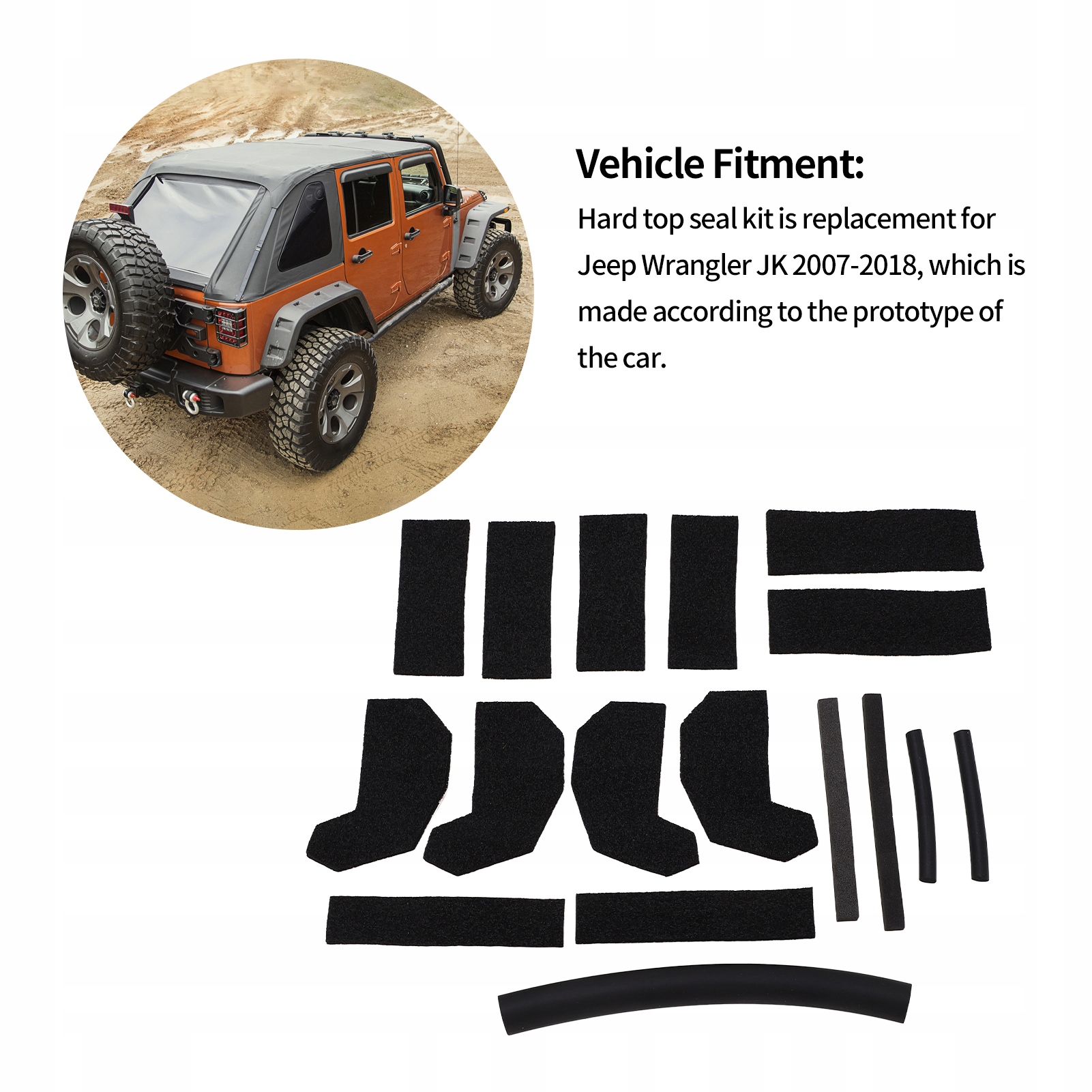 1. Комплектация автомобиля: Комплект жестких уплотнений является заменой Jeep Wrangler JK 2007-2018, изготовленного по прототипу автомобиля.