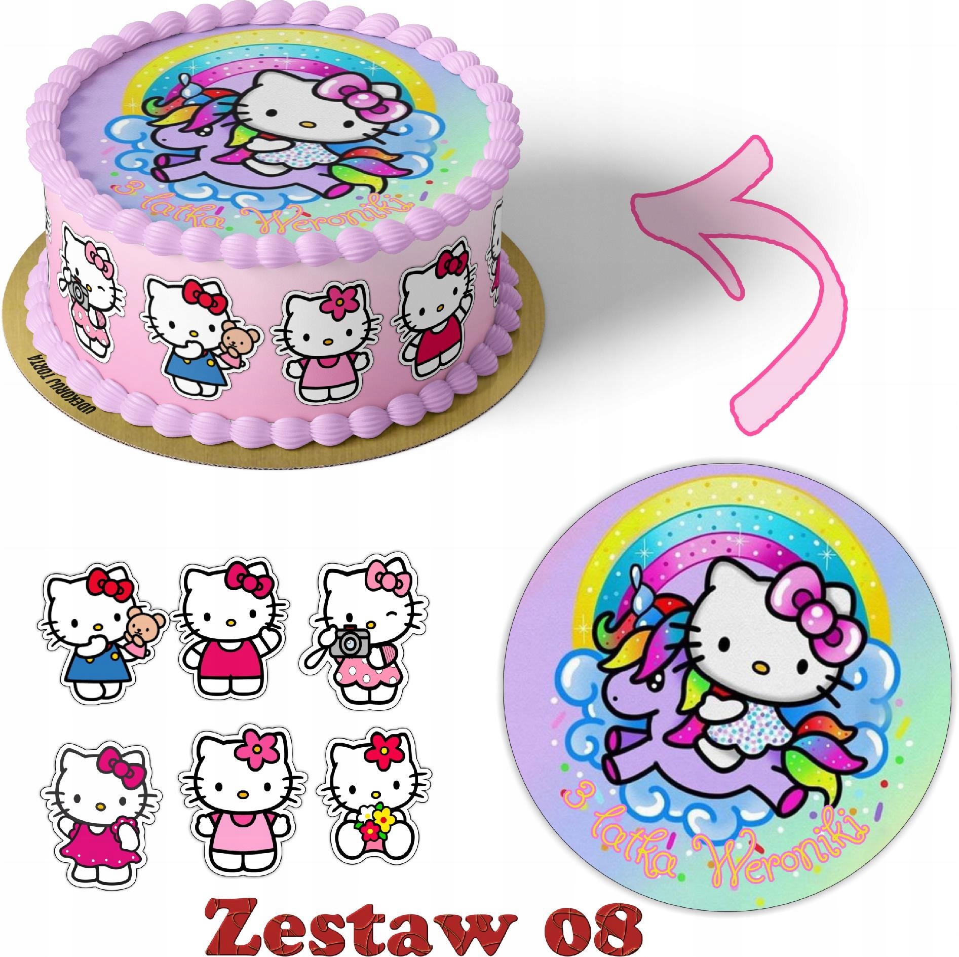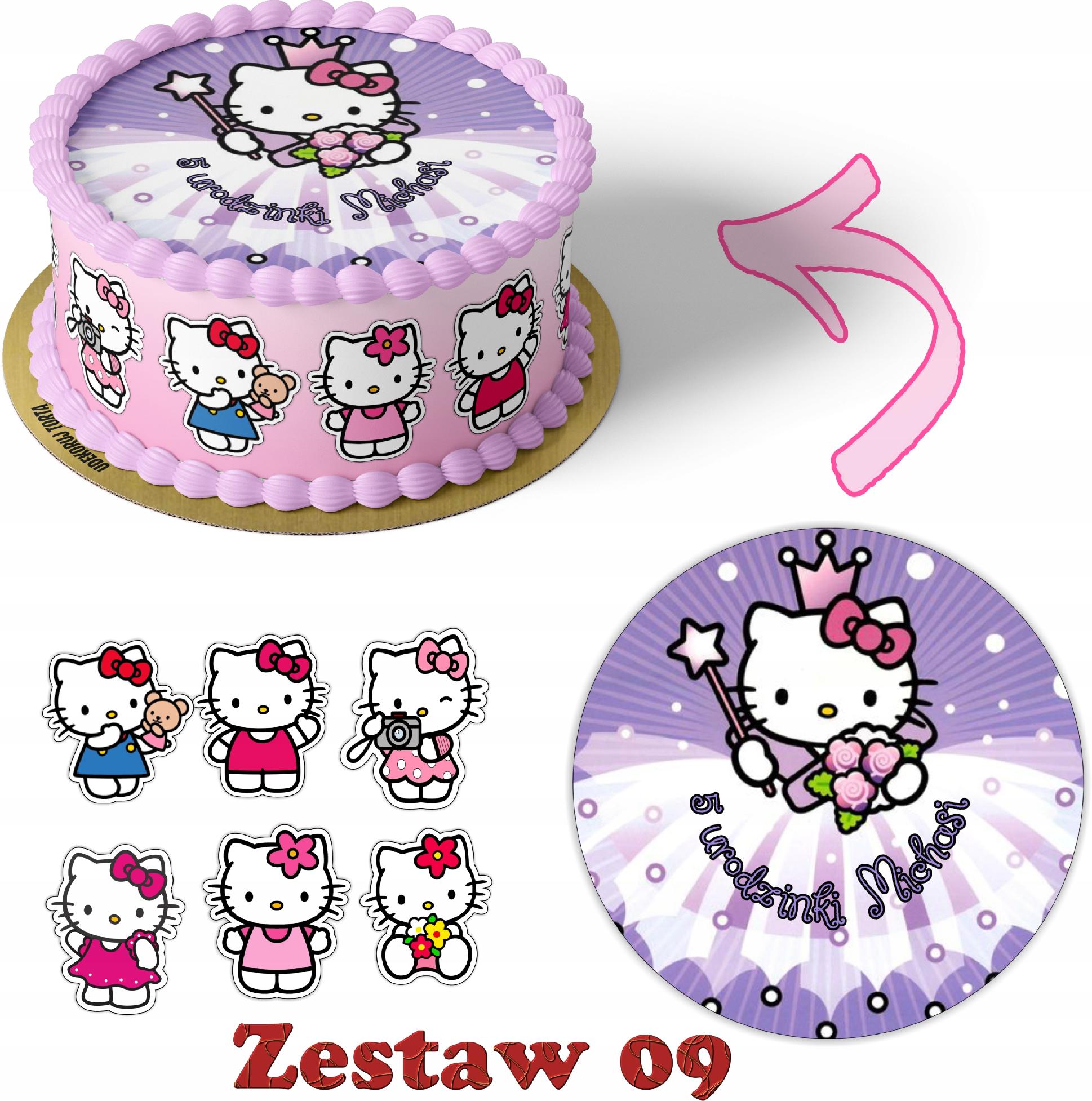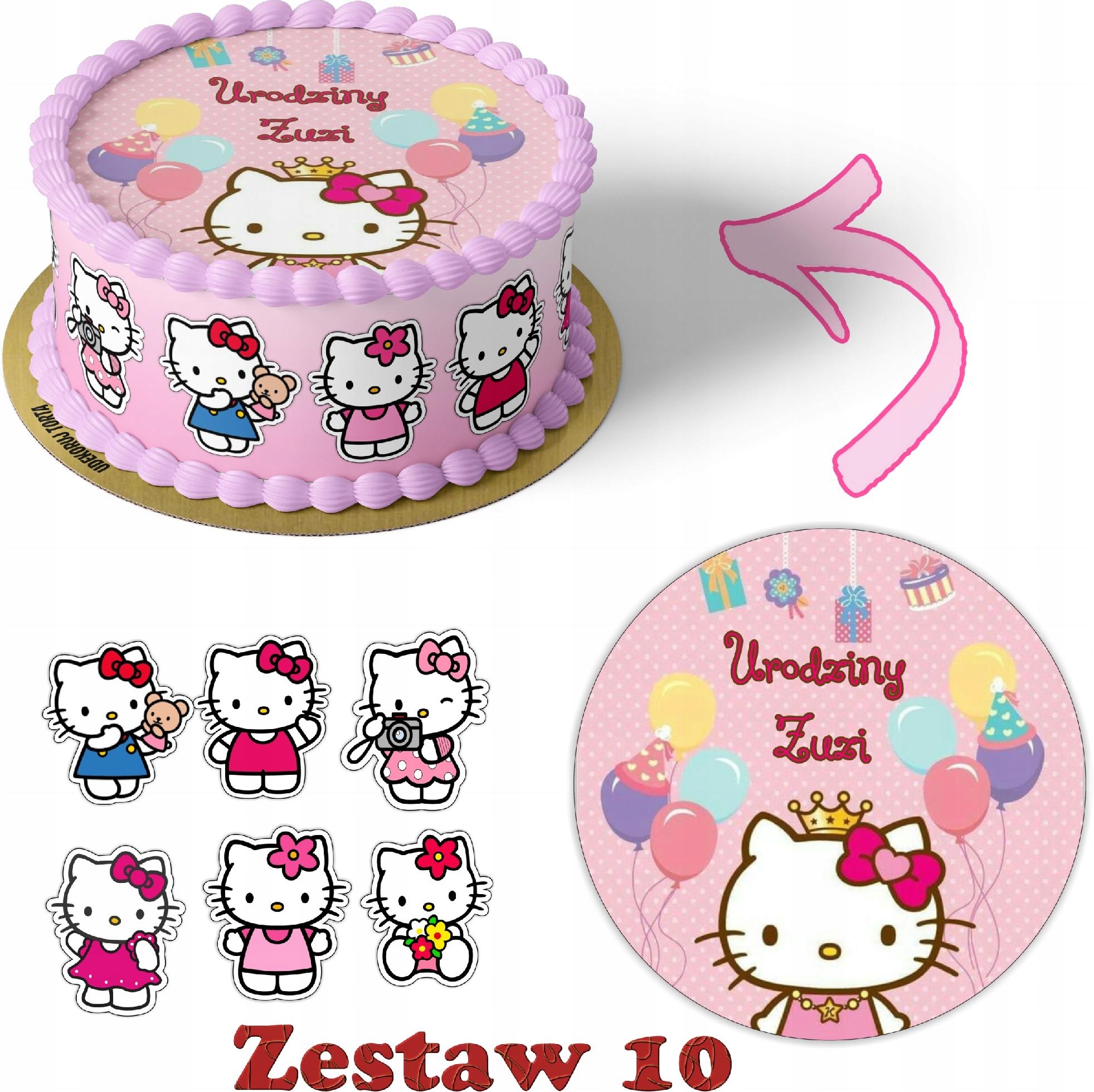 Набор съедобных вафель для торта Hello Kitty с названием + 6 символов