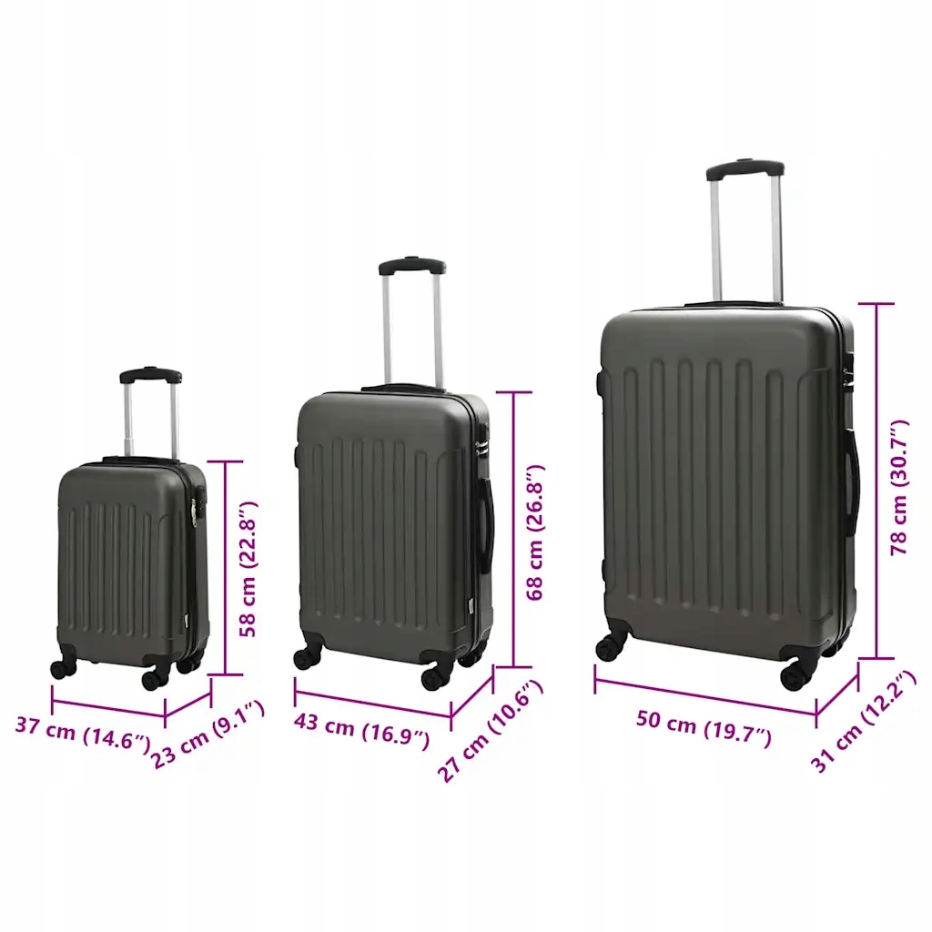 Набор чемоданов с блокадой 3 ПК, темно -серой 50 x 31 x 78 см.