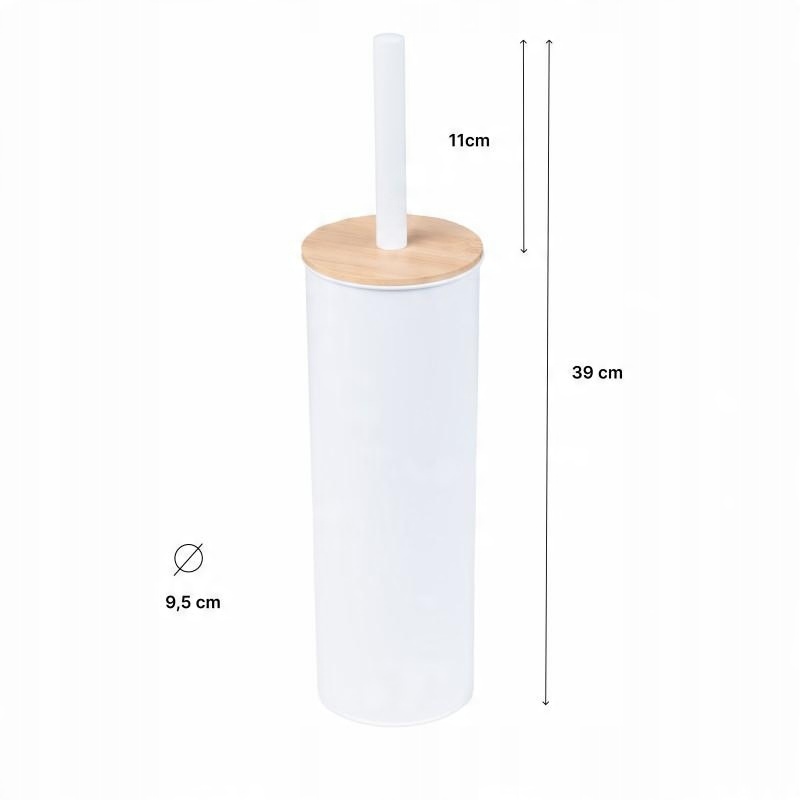 Эта туалетная щетка представляет собой комбинацию эстетики и функциональности. Изготовленный из натурального бамбука, имеет современный, закрытый контейнер, который скрывает кисть, заботясь о гигиене в ванной. Его белая поверхность идеально сочетается с различными расположениями, а бамбуковый материал обеспечивает долговечность и простоту поддержания.