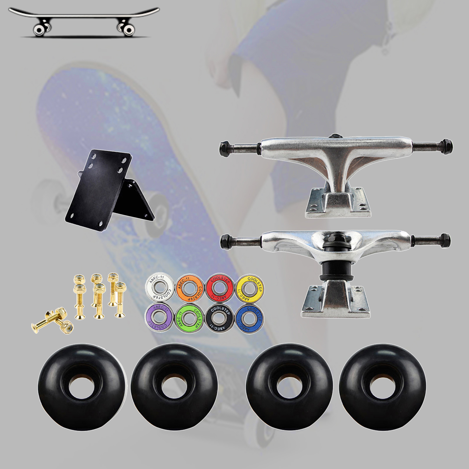 Deluxe Skateboarding детали для начинающих скейтбординг. Когда вы выбираете: упаковка, содержащая 2 грузовика, 4 колеса, 8 подшипников ABEC-11, 8 винтов, 2 куска поднятия или 2 грузовика, 4 штук, 8 кусочков ABEC-11, 8 винтов, 2 кусочка поднятых колодок, 1 кусочки, 4 кусочки дистанционных площадок. Он реагирует быстрее и реагирует быстрее, 3 -мм подставки для подъема могут сделать ваше движение более стабильным и предотвращает, как подошва предотвращает повторное управление. Ось, элементы сборки, установка и многие другие.