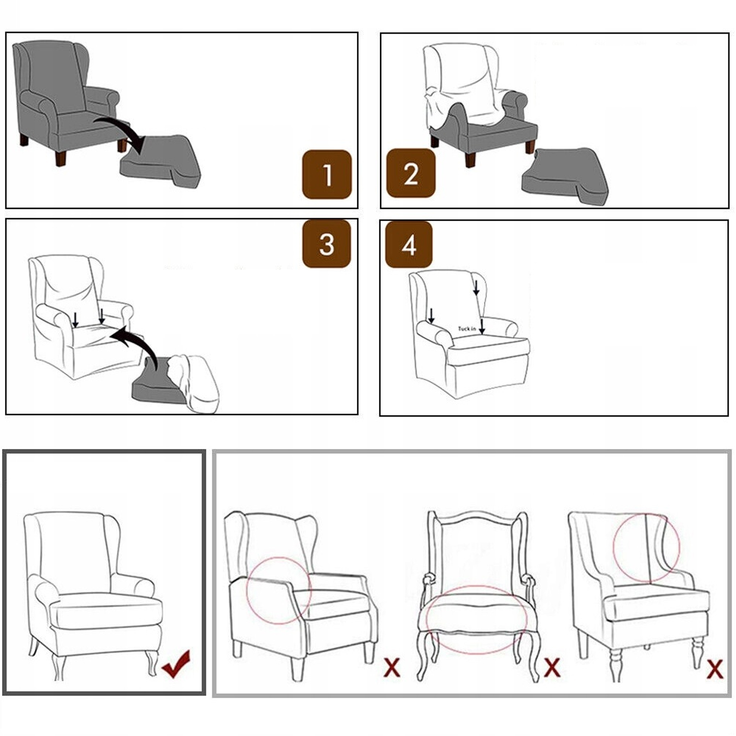 【Идеальная подгонка】: крышка для кресла спинка высоты высоты: 95-110 см; Ширина поддержки: 69-80 см. Ширина стула: 80-92 см. Примечание: крышки подходят для кресел с расщелинами, через которые можно увидеть дополнительный материал, как показано на рисунке. Прежде чем разместить заказ, измерьте размер стула.
