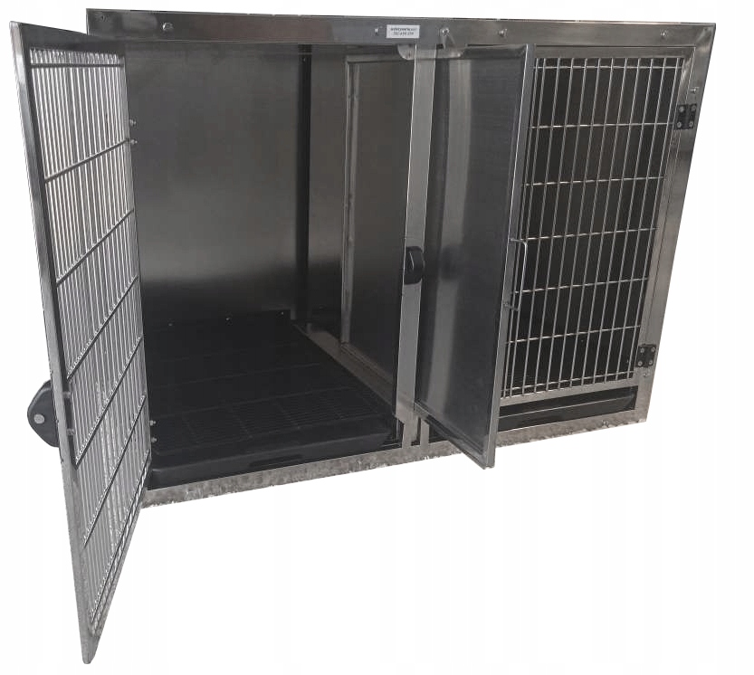 Профессиональные ветеринарные клетки для животных необходимы в кабинете ветеринарного врача. Клетки изготовлены из нержавеющей стали. Двойные двери и съемная перегородка позволяют использовать клетки для двух животных среднего размера или одного крупного. Оборудован удобными туалетными лотками, которые можно свободно выдвигать для чистки, не открывая клетку. Съемный пол из сварных брусьев. Дверца клетки оснащена магнитной системой, которая позволяет быстро закрыть клетку и в то же время предотвращает ее открытие собакой или другим животным, запертым внутри клетки. Кроме того, клетка отличается дополнительной защитой в виде увеличенного количества решеток при закрывании входной дверцы.