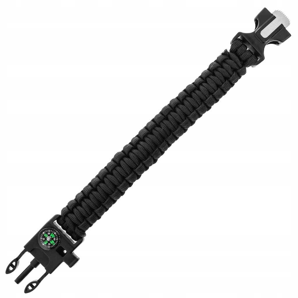 Применение: для выживания и на открытом воздухе - пила и разжигатель огня для убежищ и пожарных, ремонтная карта; кемпинг – фонарик и тактическая ручка; треккинговый - свисток, компас в браслете и зажим для бутылки для удобства ношения.
