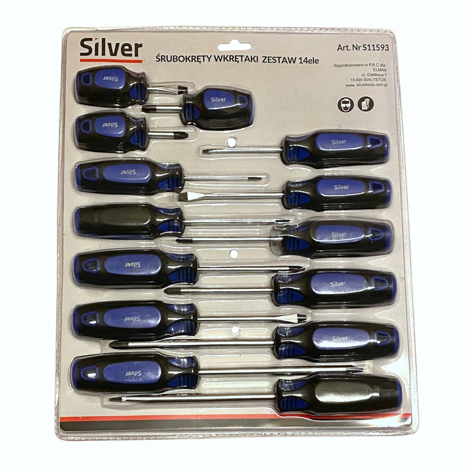 Набор серебряных отверток, состоящий из 14 элементов, идеально подходит для любого гаража или мастерской.