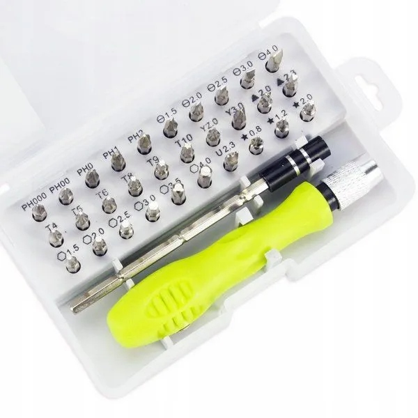 Портативный набор прецизионных отверток в удобной транспортировочной коробке. Набор идеально подходит для работы с различными типами устройств, электроники и GSM-оборудования. В комплект входит удобная ручка с нескользящим покрытием.