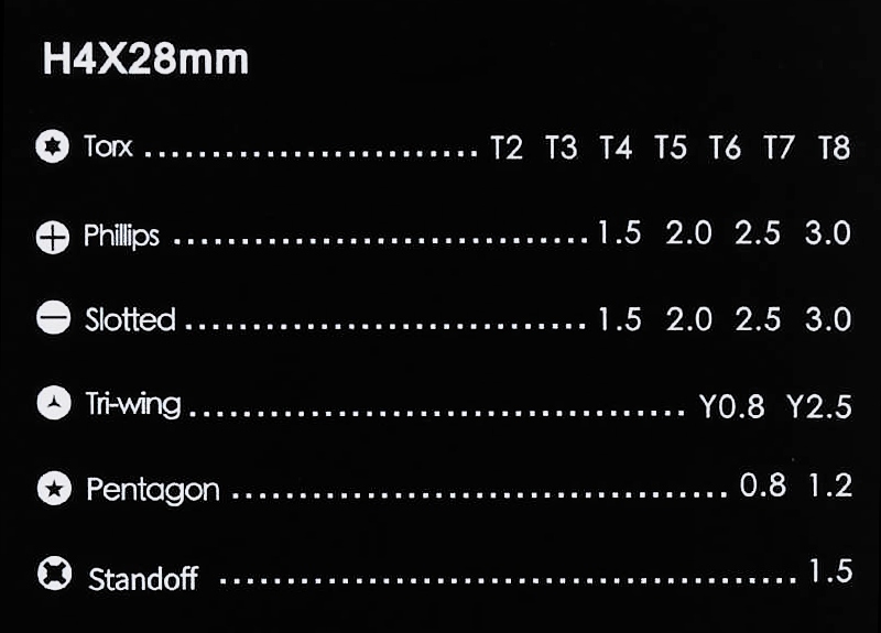 - 4 гнезда с плоской головкой: 1,0, 2,0, 2,5, 3,0 мм (модели iPhone, смартфоны и т. д.)
