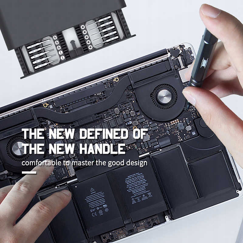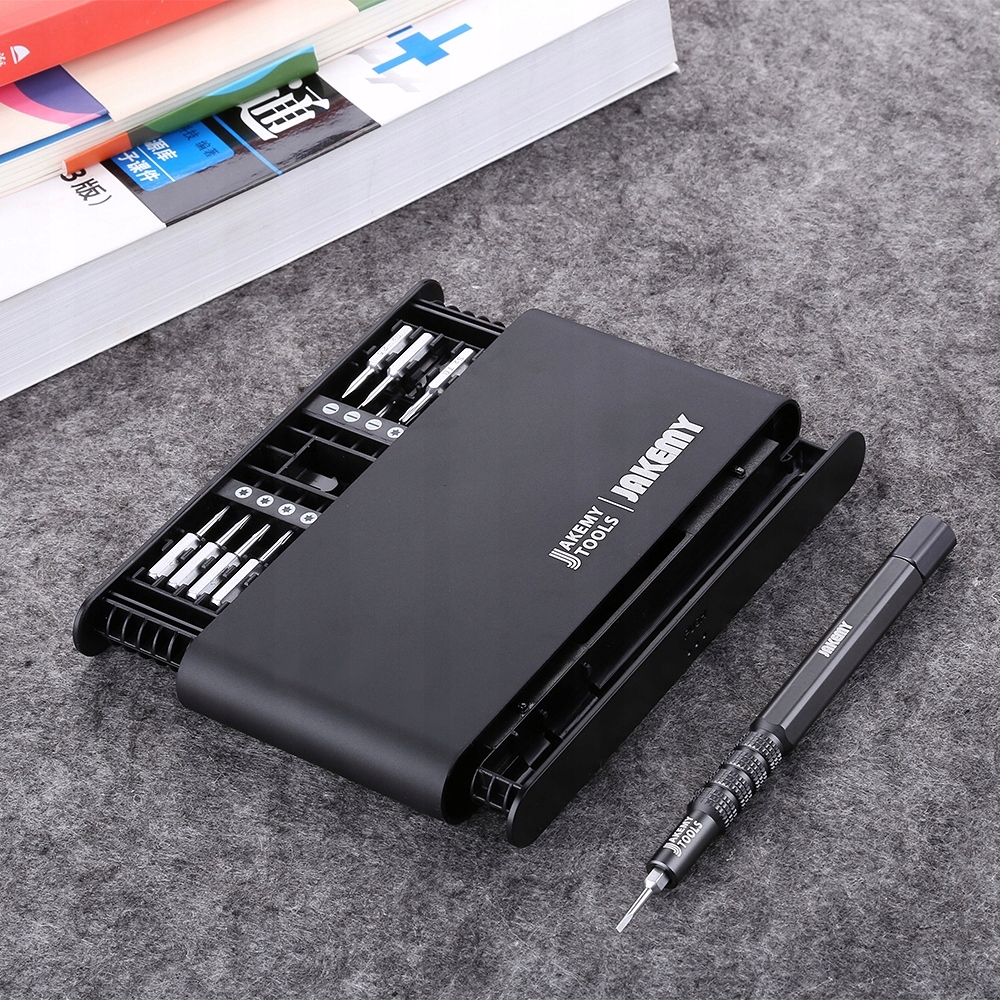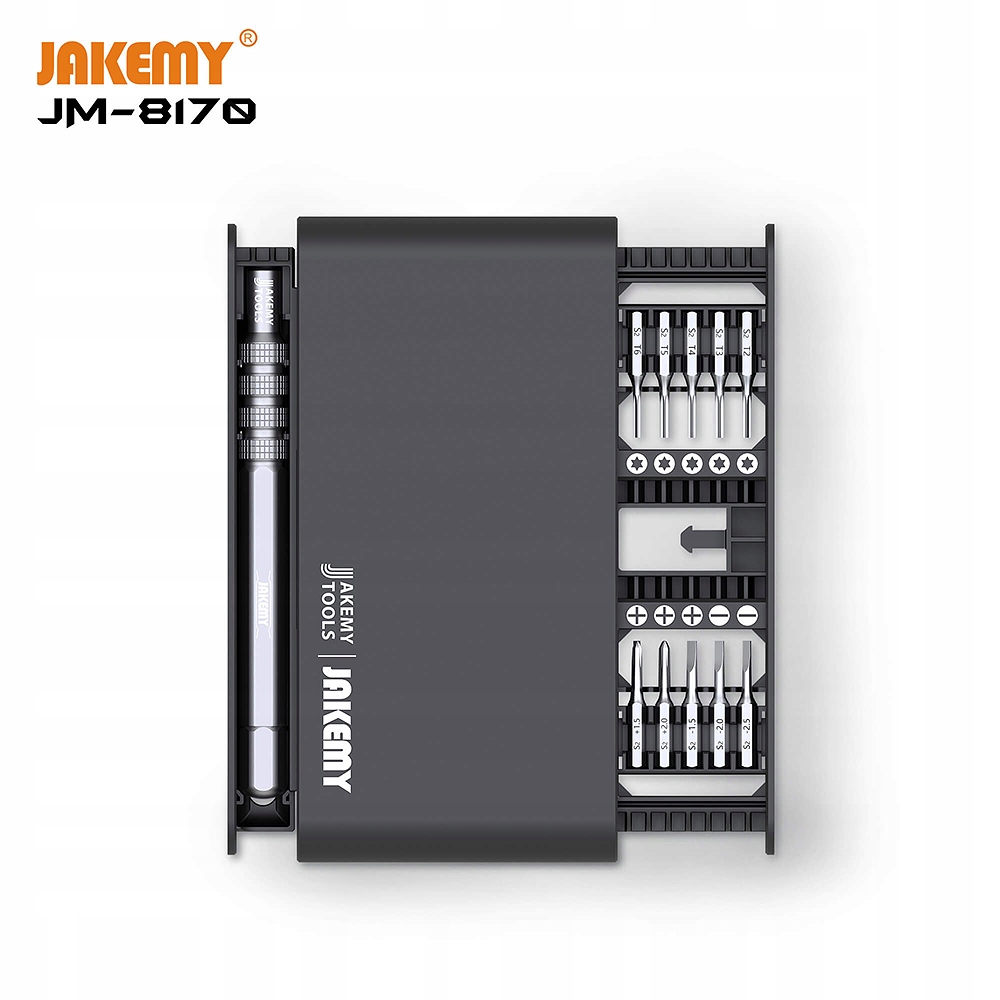Jakemy JM-8170 — это набор из 20 прецизионных магнитных бит с легкой алюминиевой ручкой, предназначенных для точного сервисного ремонта телефонов и смартфонов, включая продукцию Samsung, Huawei, Xiaomi, Oppo и Apple, то есть iPhone, MacBook Air и Pro.