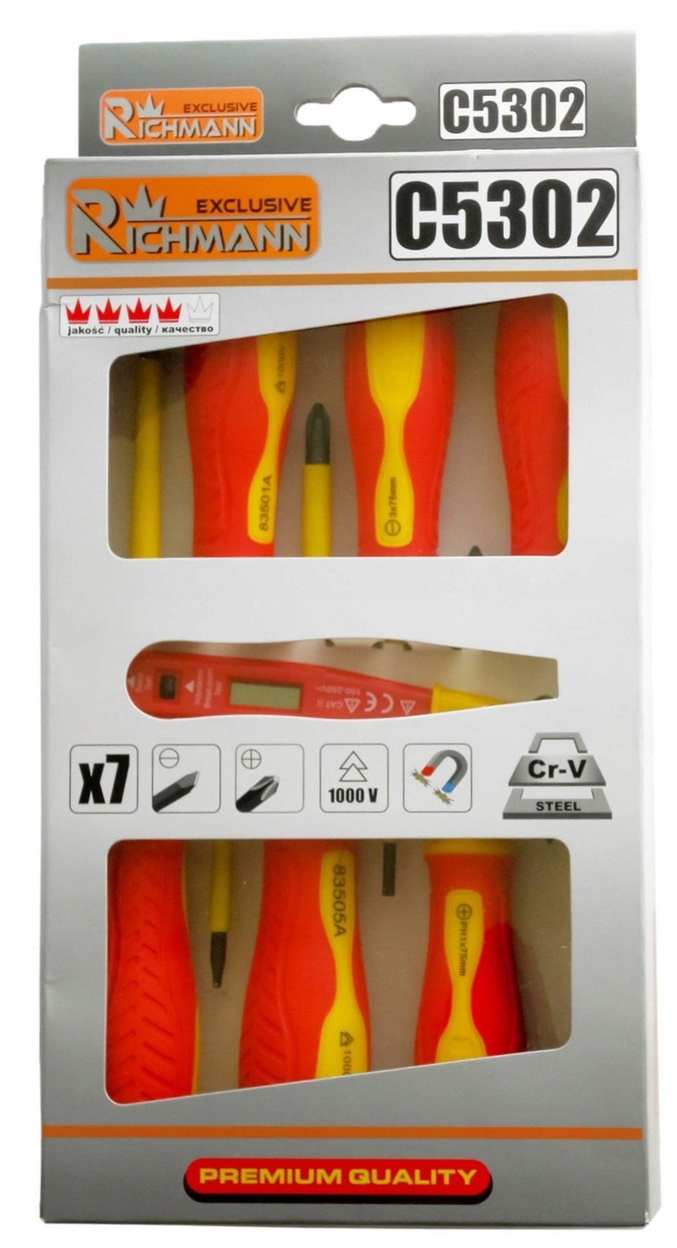 - Профессиональный набор изолированных отверток для электриков в диапазоне напряжений до 1000 В, сертифицированных