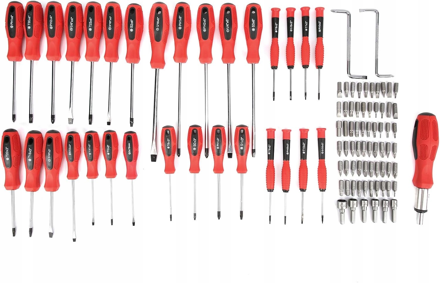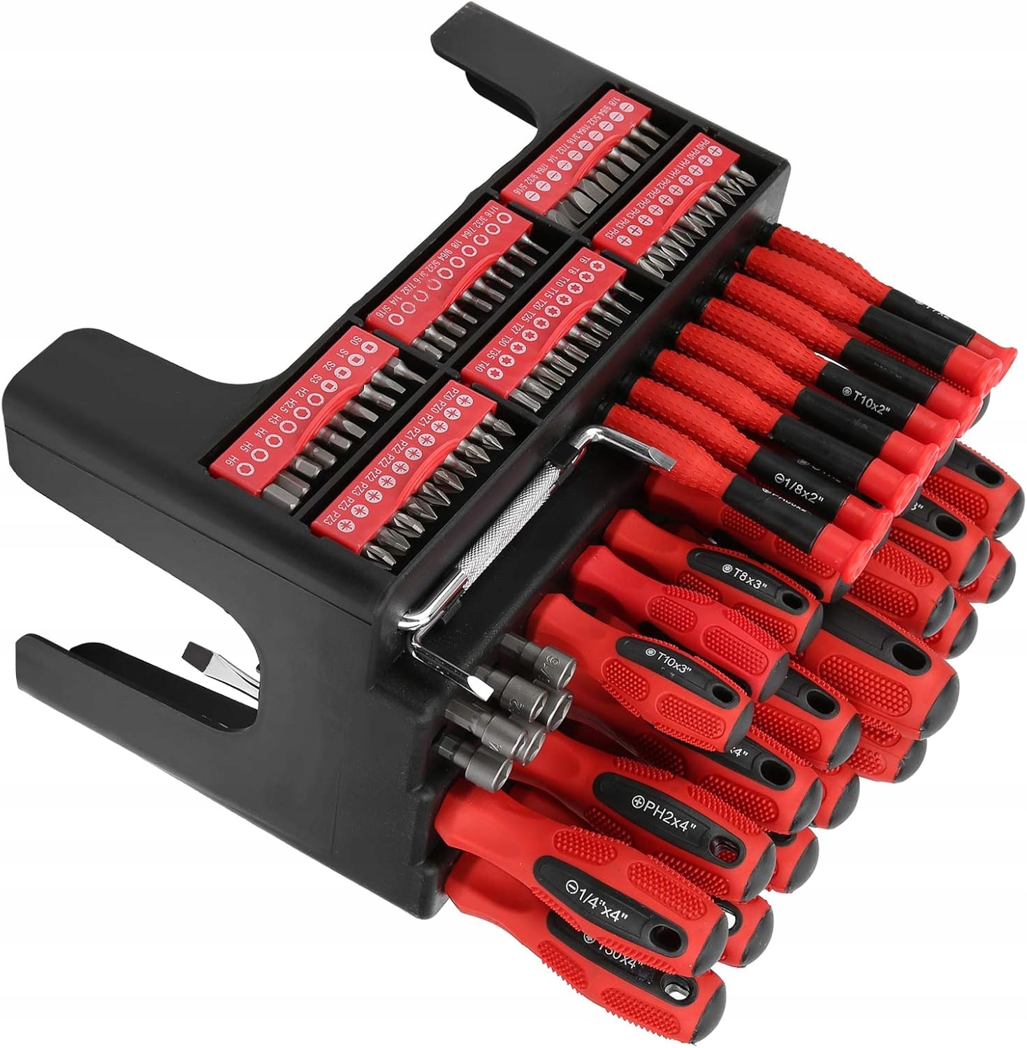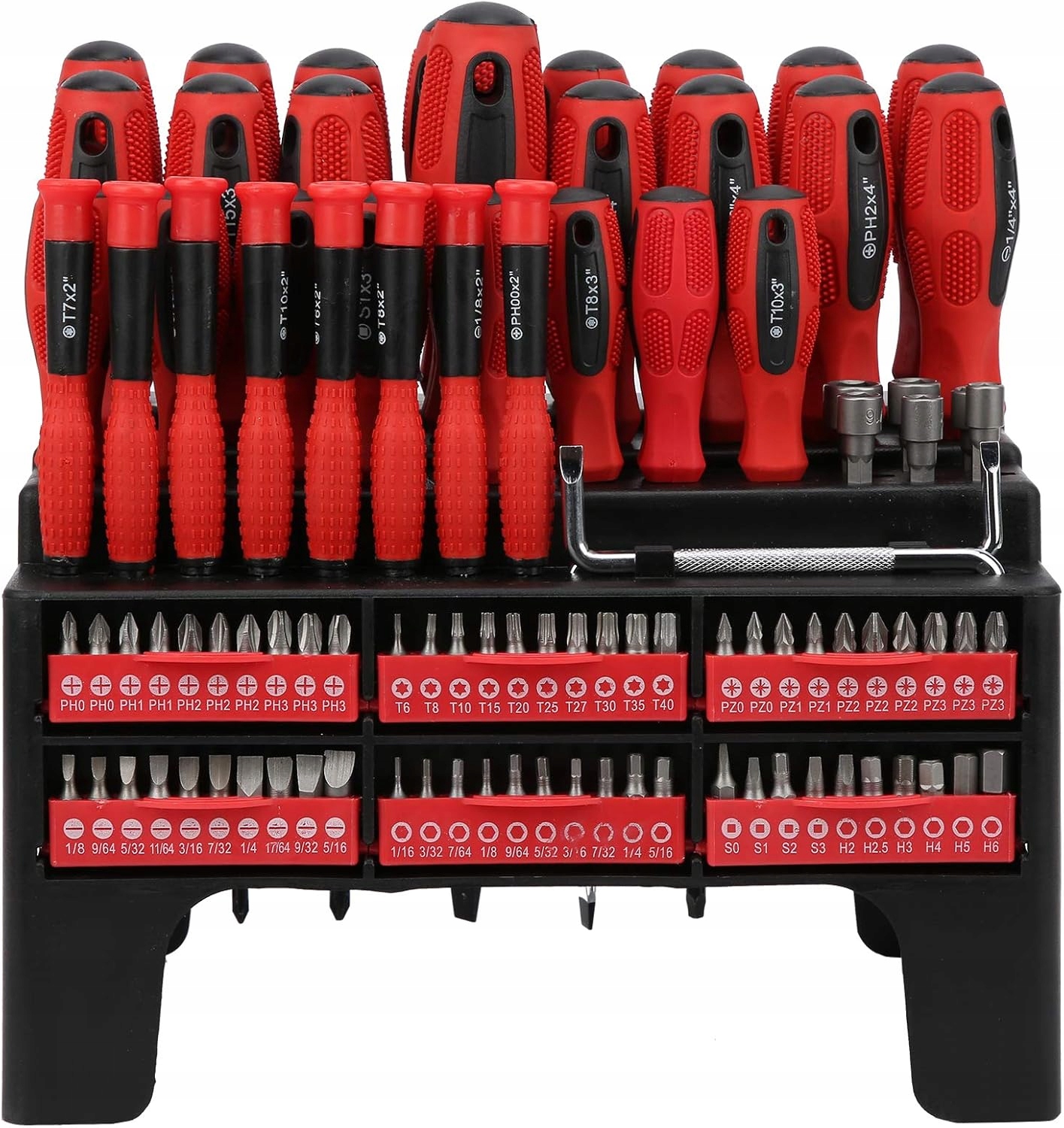 100-элементный набор отверток, битов и навесок на подставке. Двухместный (пластиковый+резиновый) тип мягкого сжима