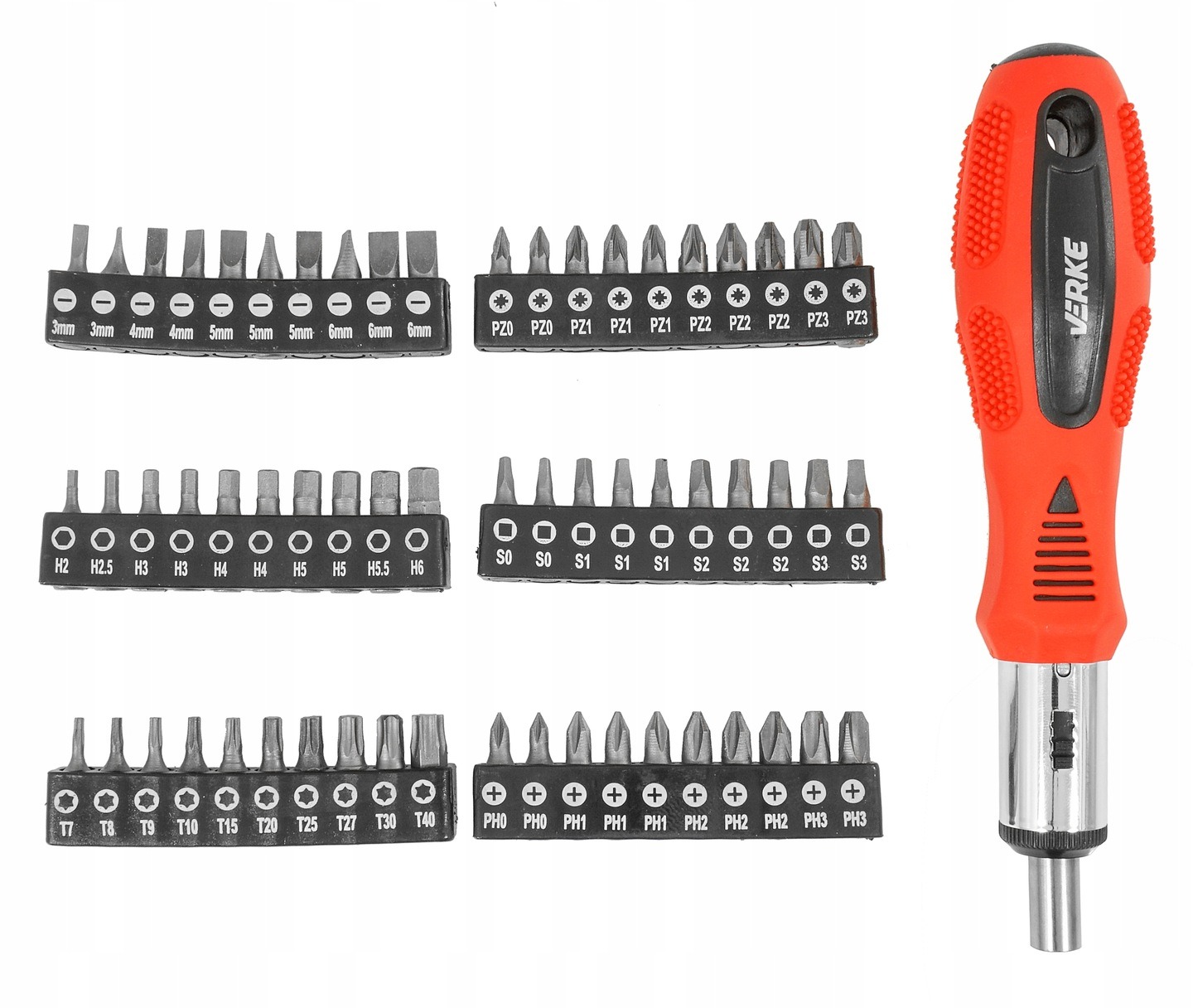 В комплект входит эргономичная отвертка с храповым механизмом, которая ускоряет работу и облегчает использование бит в труднодоступных местах.