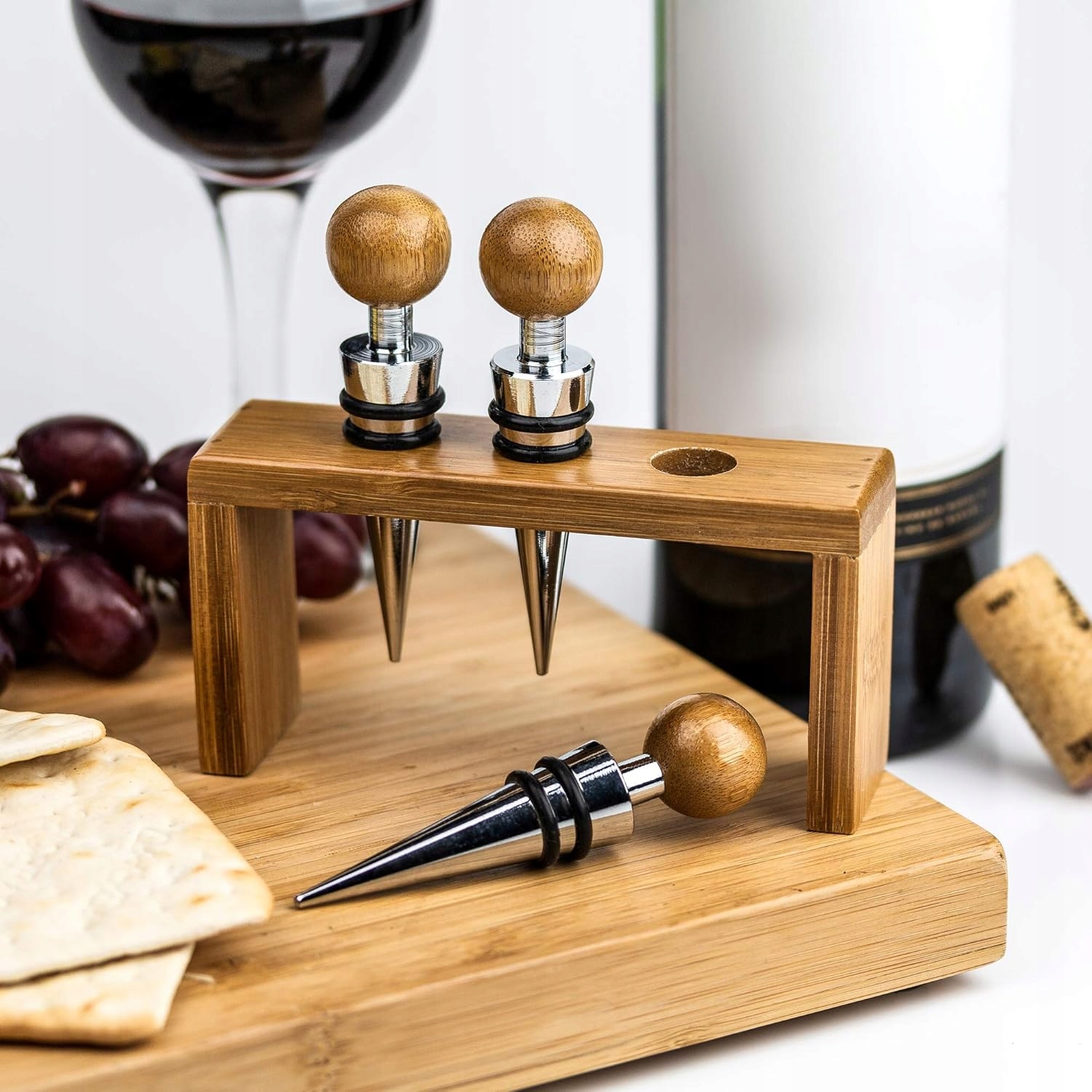 - Хранение: Пробки помещаются в практичную бамбуковую подставку, которая защищает их и добавляет очарования любому пространству.