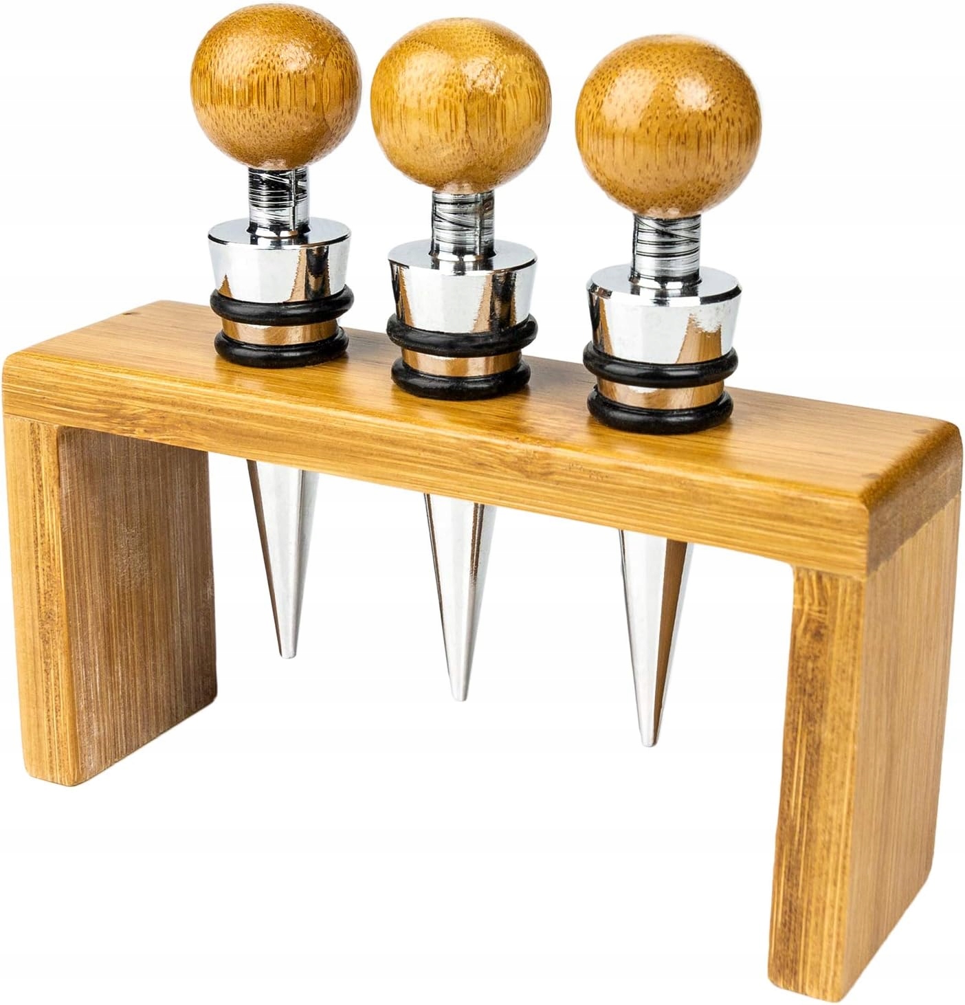 НАБОР ВИННЫХ ПРОБОК С БАМБУКОВОЙ ОТДЕЛКОЙ 3 ШТ. + ПОДСТАВКА