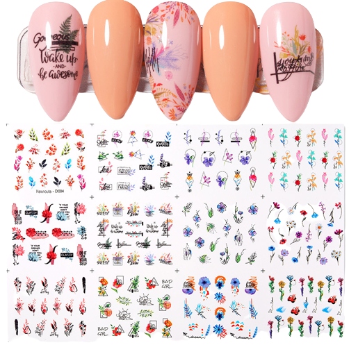НАБІР ВОДНИХ НАКЛІПОК ДЛЯ НІГТІВ 12 ШТ D004