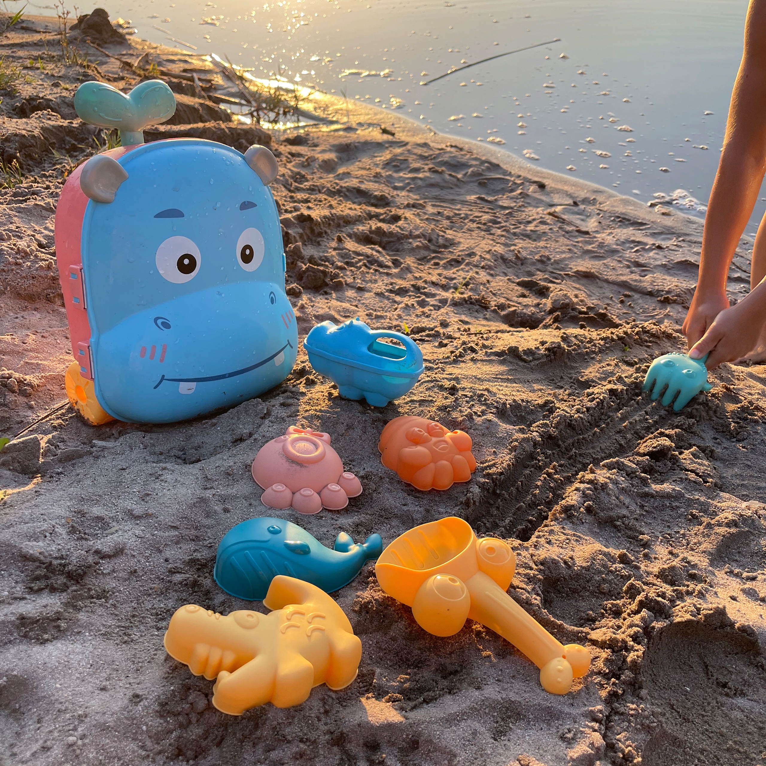 Набор песка WOOPIE 3в1 Чемодан Бегемот + игрушка для воды