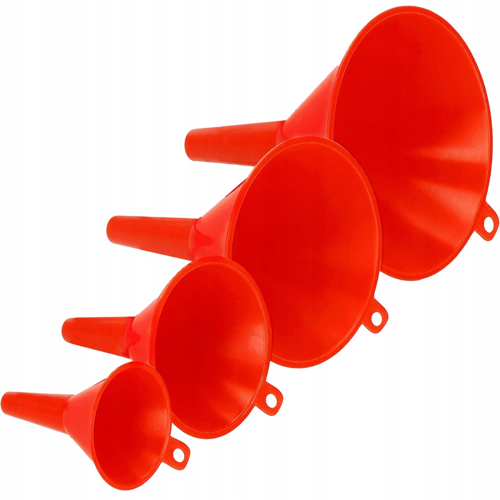 Воронки в количестве 4 шт. Размеры идеальны как для гаража, так и для сада. Незаменимы при заправке различных типов рабочих жидкостей в автотранспорте, а также в саду при заправке опрыскивателей и т. д.