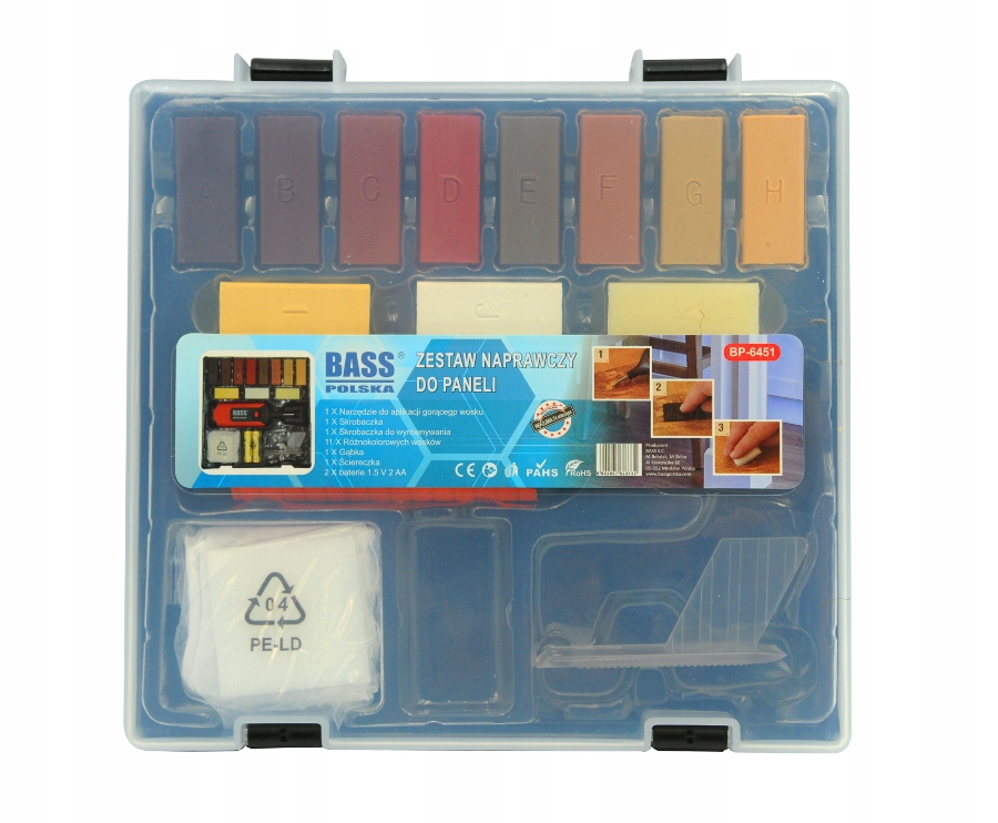 - Заполните функции не только на по этажах! Набор для ремонта Bass Polska также идеально подходит для заполнения царапин в двери, оконных рамках, мебели, оконных подоконника и других продуктов из деревянных и деревянных материалов.