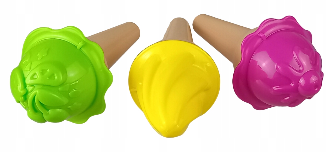 - формы для ведерка и мороженого - в комплект входят: ведро (смесь цветов), формы для мороженого (цвета отправляются случайным образом) и ложка для песка. в формочки.