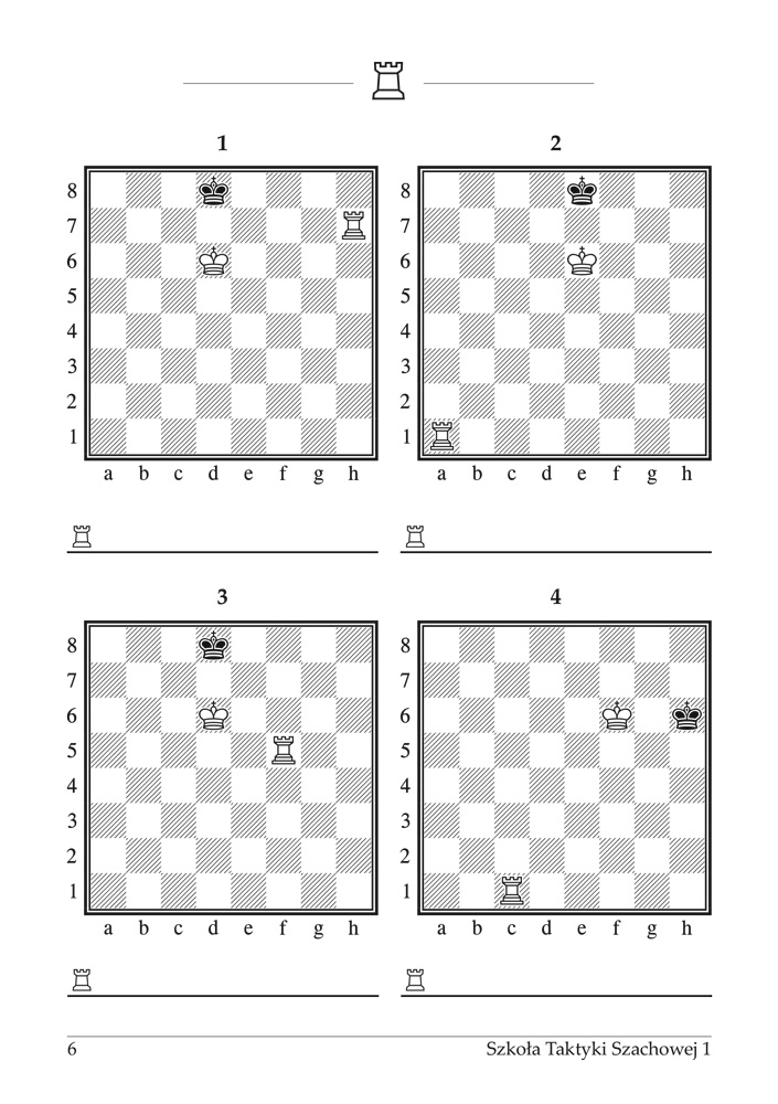 Задания расположены по степени сложности – от простого к более сложному. Итоговые задания в отдельных разделах, особенно в последнем разделе (всего около 50 заданий), имеют более высокую степень сложности, и над ними могут работать более опытные шахматисты.