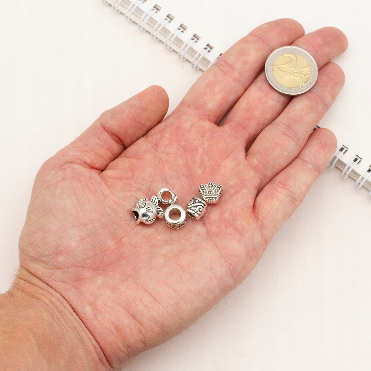 Набір євробісеру, мікс, великий отвір, мурашка. Срібло 7-13мм 100шт/комплект