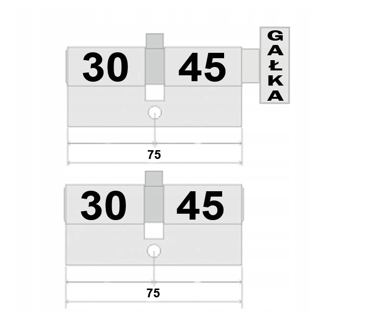 НАБОР ЦИЛИНДРОВ-ВСТАВОК В ОДНОКЛЮЧЕВОЙ СИСТЕМЕ 45/30 + G45/30 С НИКЕЛЕВОЙ РУЧКОЙ ЗАМКА С 5 КЛЮЧАМИ
