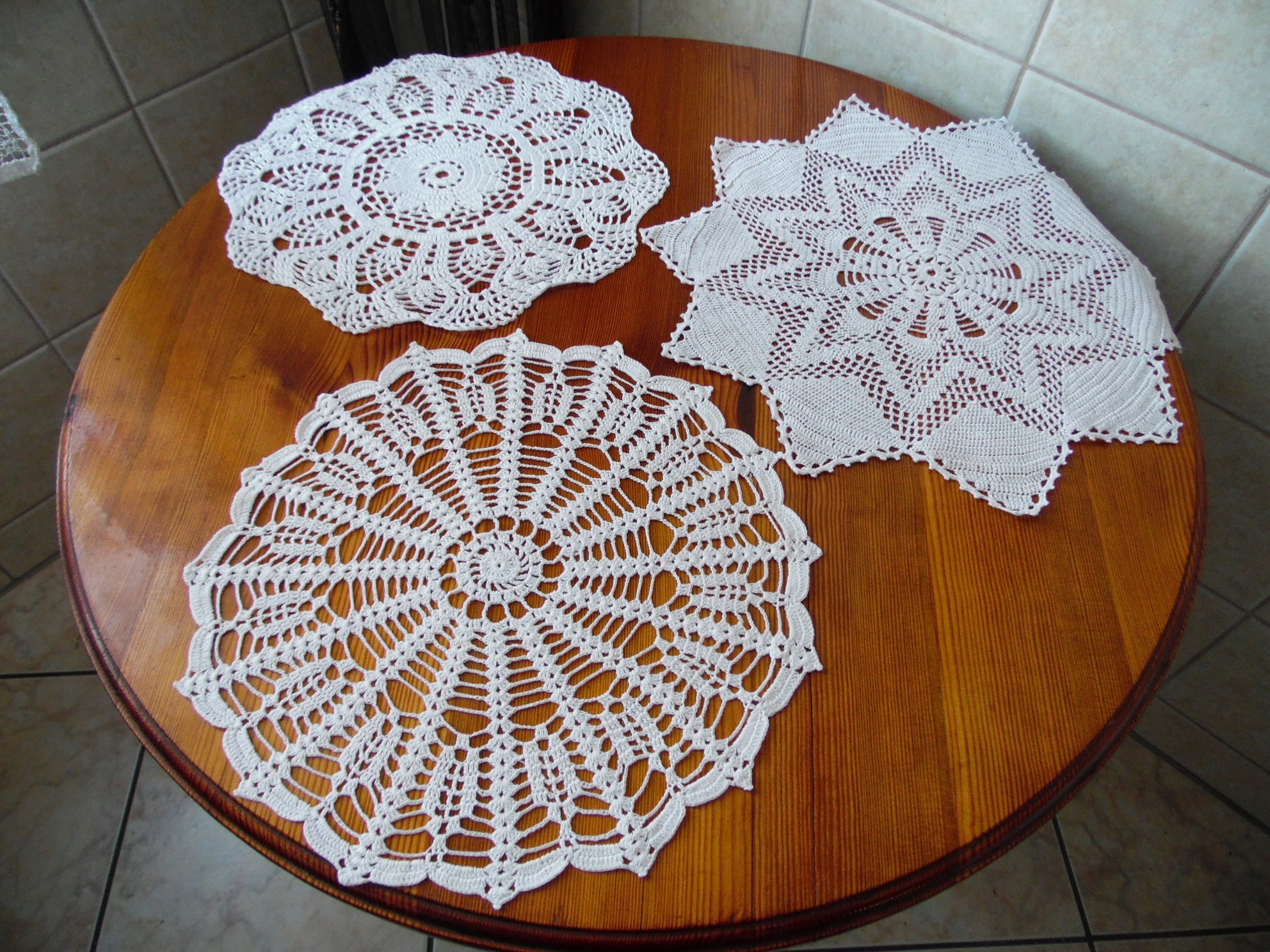 Набор кружевных салфеток, связанных вручную крючком из хлопковых и смешанных ниток, разных оттенков белого цвета. Размер: диам. от 31 до 40 см, 8 шт