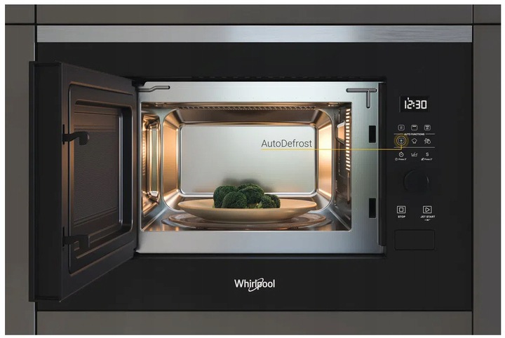 Встроенная микроволновая печь мощностью СВЧ 800 Вт. Мощность гриля 1000 Вт. Камера из стали. Внутреннее освещение. Диаметр проигрывателя 245 мм. Быстрый нагрев продуктов Jet Start и быстрый разогрев Jet Defrost.