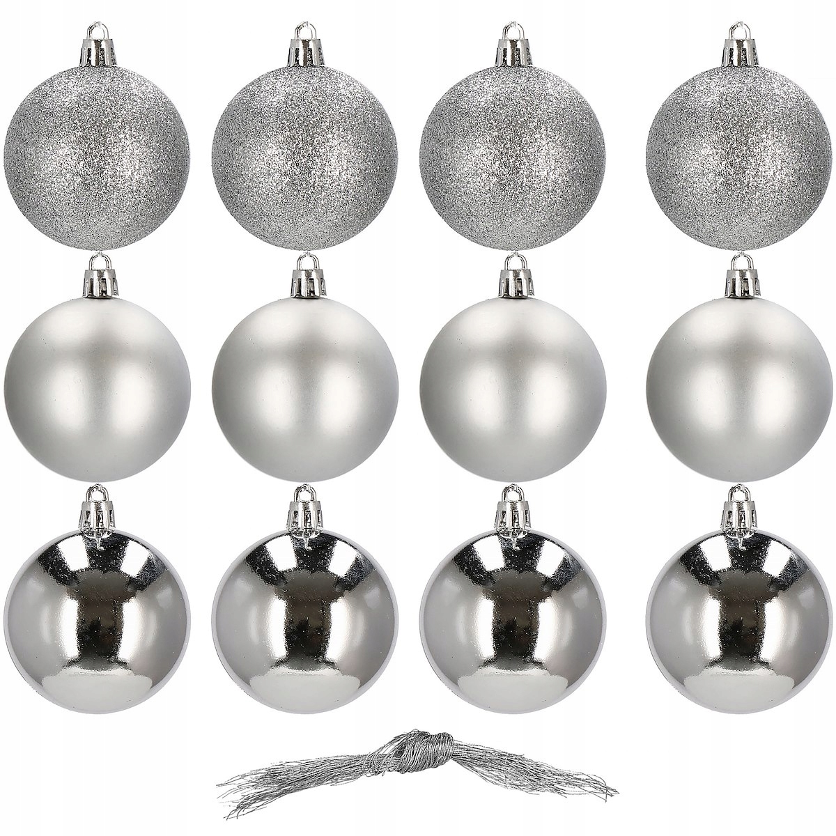 НАБОР ЕЛОЧНЫХ ШАРОВ, НЕБЛОКИРУЕМОЕ СЕРЕБРО 12 шт.