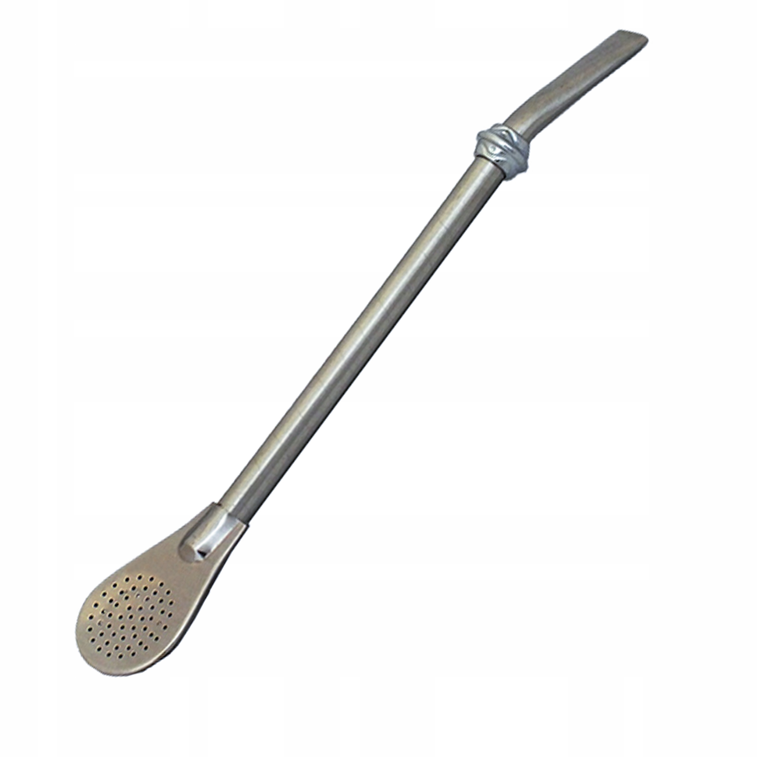 Хорошо фильтрующая, слегка профилированная бомбилла из нержавеющей стали, украшенная серебряным кольцом. Длина 19 см, с широким ситом, идеально подходит для любых видов мате, особенно бразильских сортов.