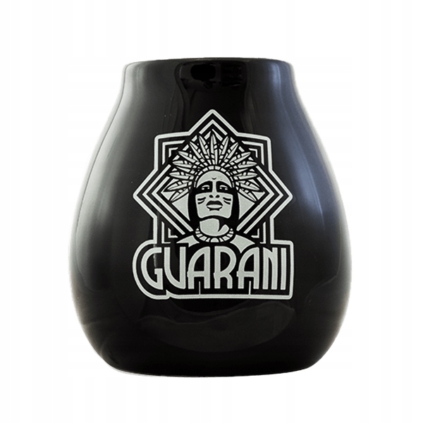 Практическая кастрюля для мате объемом около 350 мл. Изготовлен из керамики высочайшего качества. Он имеет классический дизайн, вдохновленный традиционными южноамериканскими тыквами. Украшен логотипом парагвайского бренда йербы-мате Guarani. Застеклена внутри и снаружи. Легко содержать в чистоте и устойчив к различным видам механических повреждений.