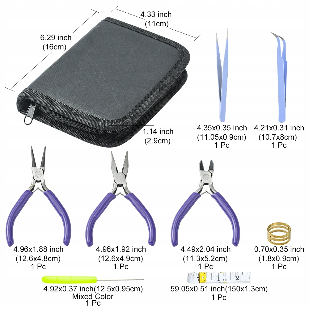 Набор инструментов ювелирных изделий - это набор «все в одном». Этот набор идеально подходит как для начинающих, так и для профессионалов, предоставляя все необходимые инструменты для работы с ювелирными изделиями. Файлы, изгиб проволоки и формирование ювелирных элементов. : Подходит для захвата, монтажного и выпрямленного деталей, а также для работы с соединительными кольцами. , как бусы, стразы или другие элементы. Точная работа на небольших объектах. : используется для измерения длины, ширины или окружности материалов при создании ювелирных изделий или других творческих проектов