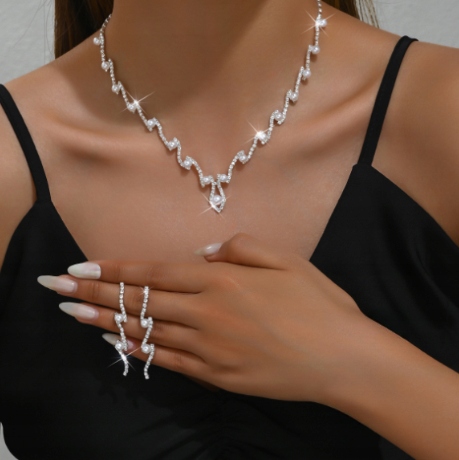 Набор ювелирных изделий Серьги Парли Свадебное ожерелье Серебряное B22 стразы