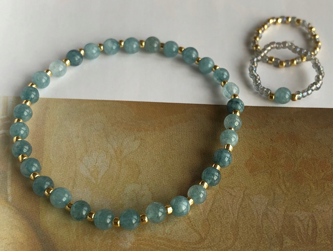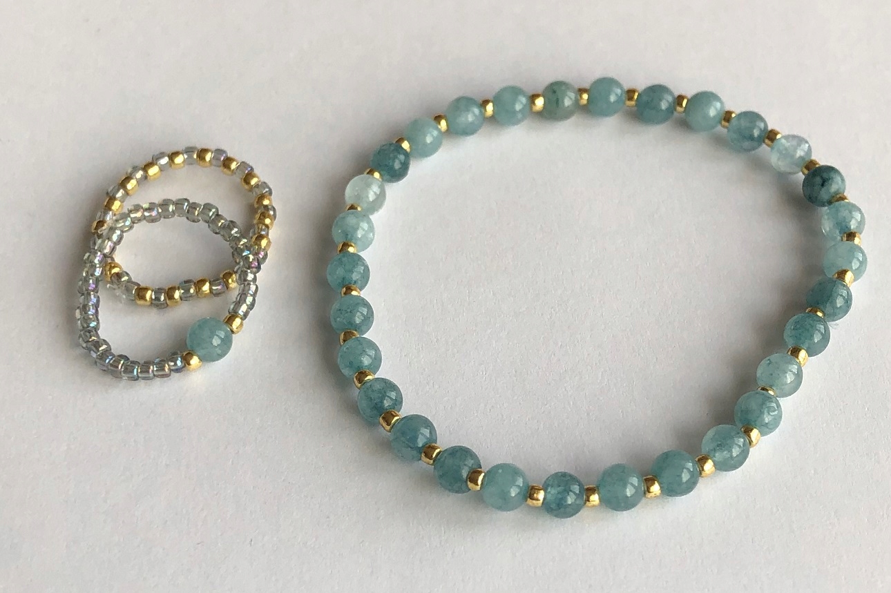 Набор украшений из аквамариновых камней 2 колец и гибкого браслета