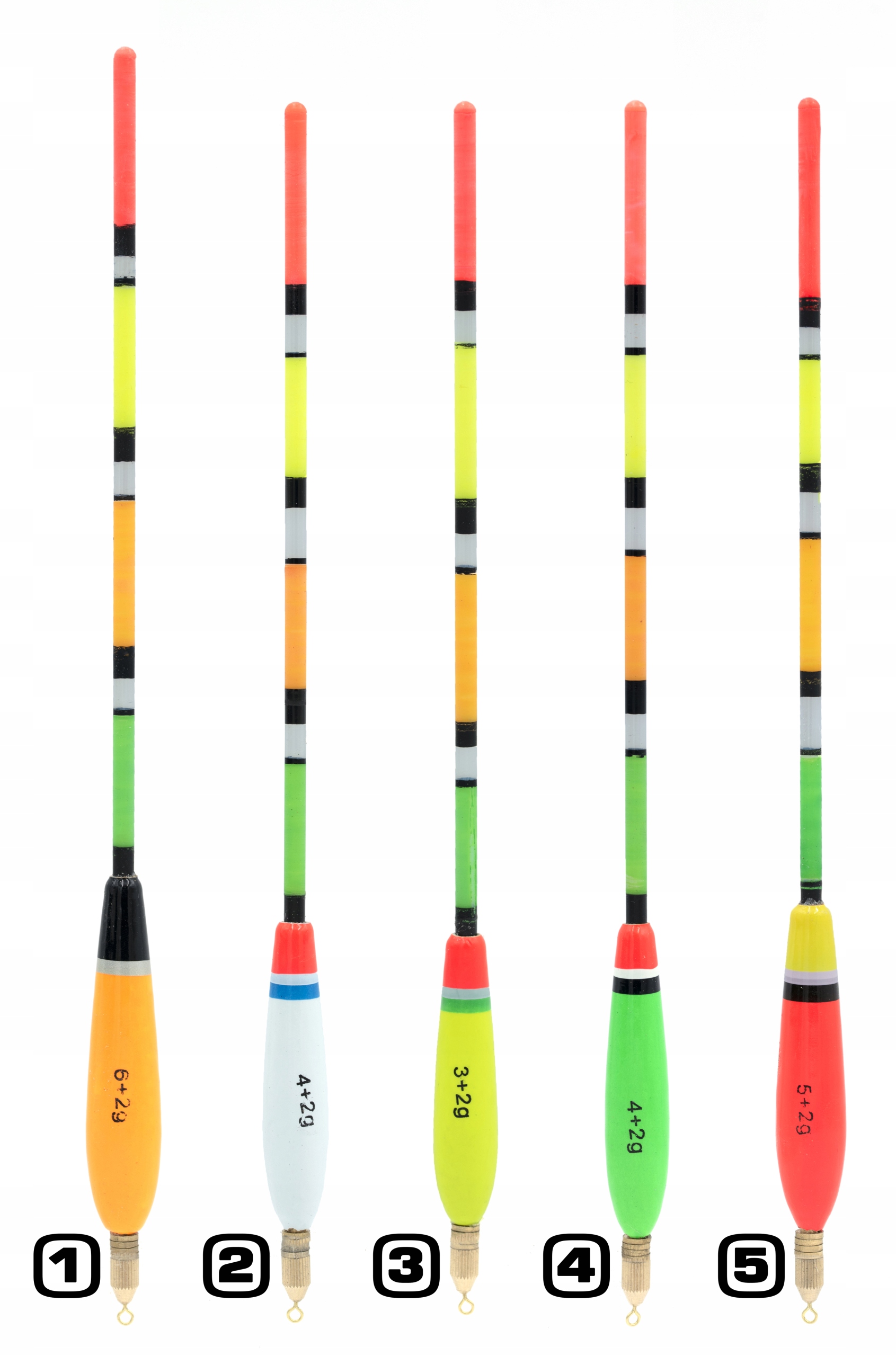 НАБОР ИЗ 5 БАЛЬЗОВЫХ ПОПЛАВКОВ 3+2G, 4+2G, 5+2G, 6+2G
