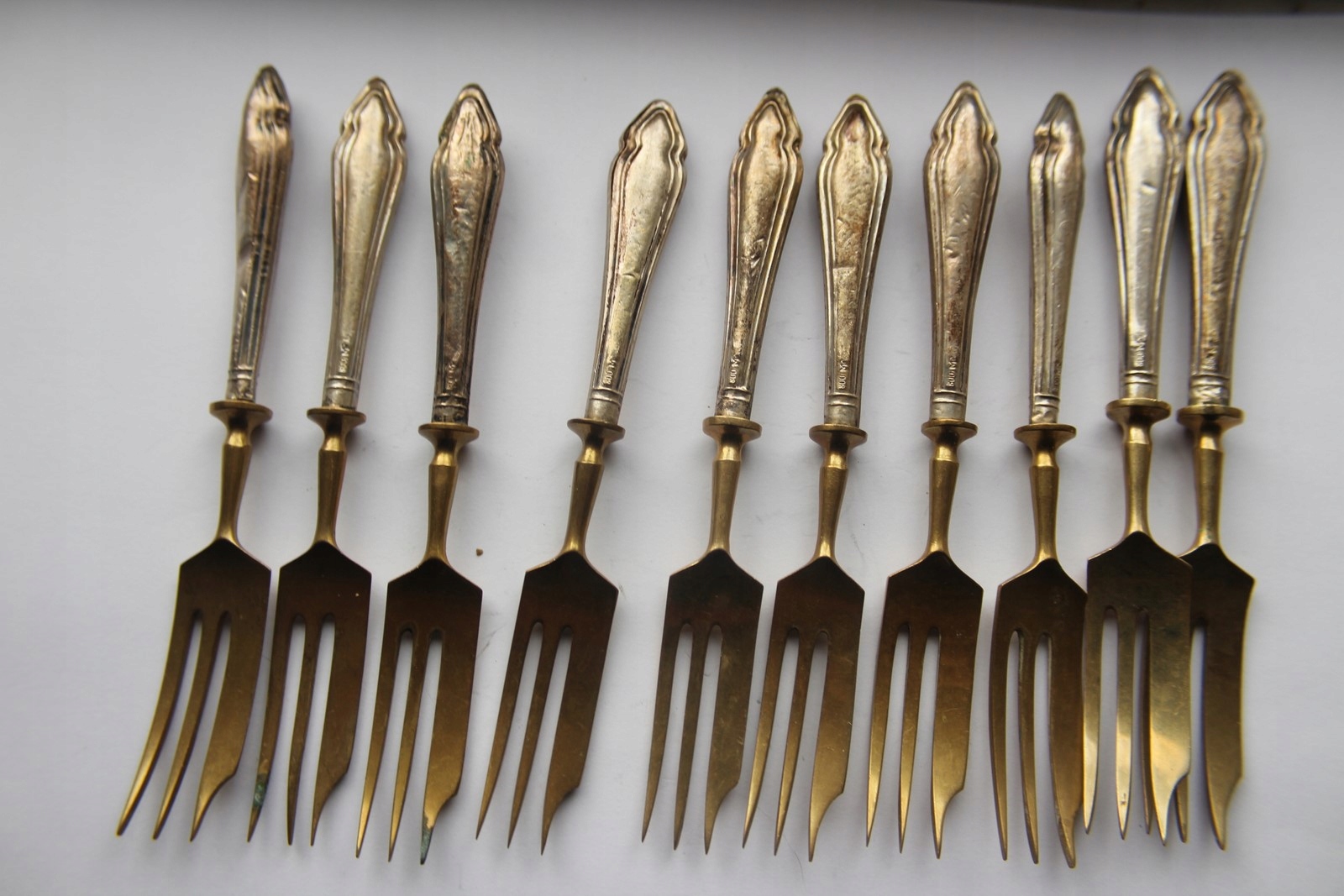 НАБІР З 10 ЛАТУННИХ ВИЛОК ЗІ СРІБНОЮ СТРІЖКОЮ -(S-408)