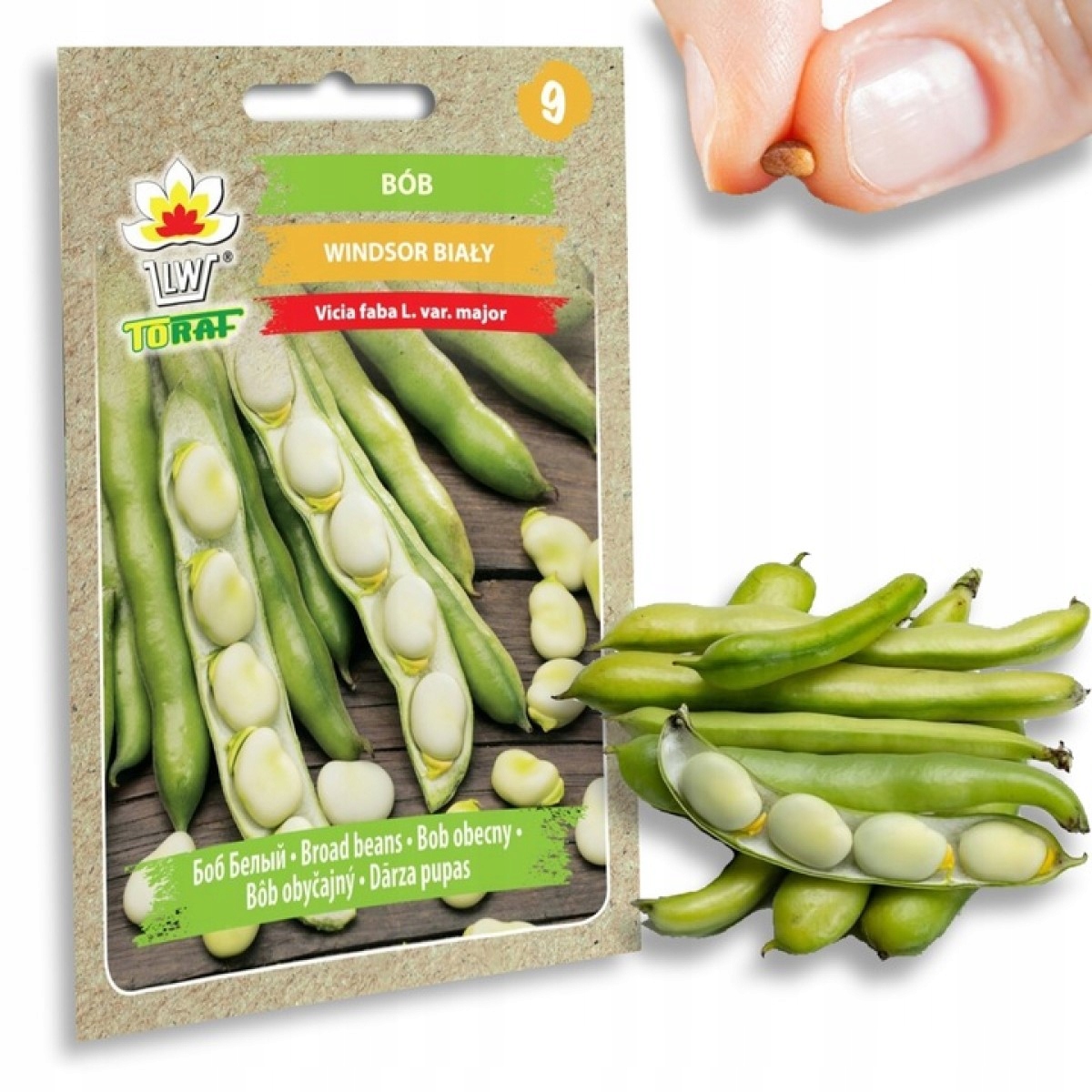 Среднеранний, очень урожайный сорт. Растения вырастают до высоты 120 см и развиваются плохо. Растение имеет 6-10 широких стручков с 3-4 крупными плоскими зеленовато-белыми семенами. Семена следует высевать на глубину 4-6 см как можно раньше весной III-V годов, рядами через каждые 30-50 см и в ряду кистями по 2-3 семени через каждые 25 см. Требуется тяжелая, плодородная, богатая влагой почва.