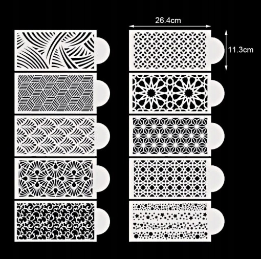 2. [10 дизайнов]: эти трафареты для тортов с 10 различными дизайнами предлагают широкий выбор вариантов украшения торта. Дайте волю своему воображению и создайте красивые узоры на своих тортах.