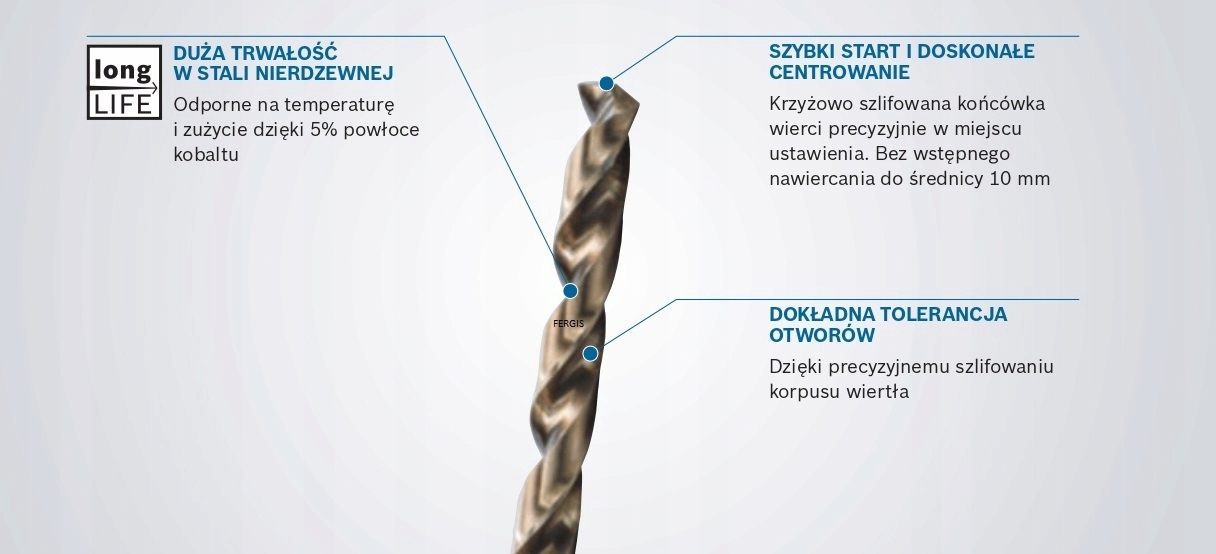 - РЕКОМЕНДАЦИЯ: при сверлении сверлами по металлу HSS-Co использовать универсальное охлаждающе-смазочное масло 2.607.001.409