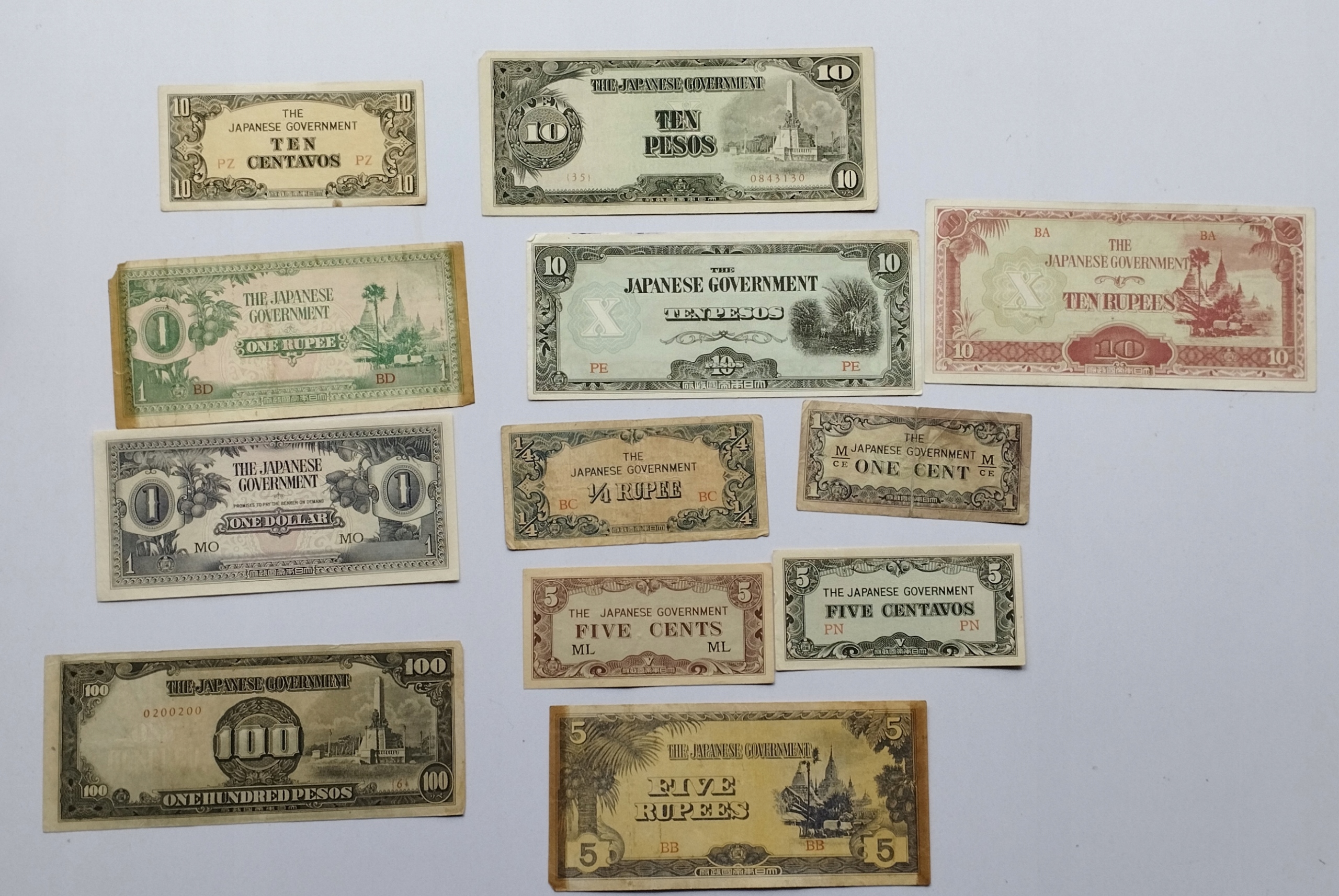 НАБОР ИЗ 12 БАНКНОТ ОККУПАЦИИ БИРМЫ, Малайи И ФИЛИППИН ЯПОНИИ