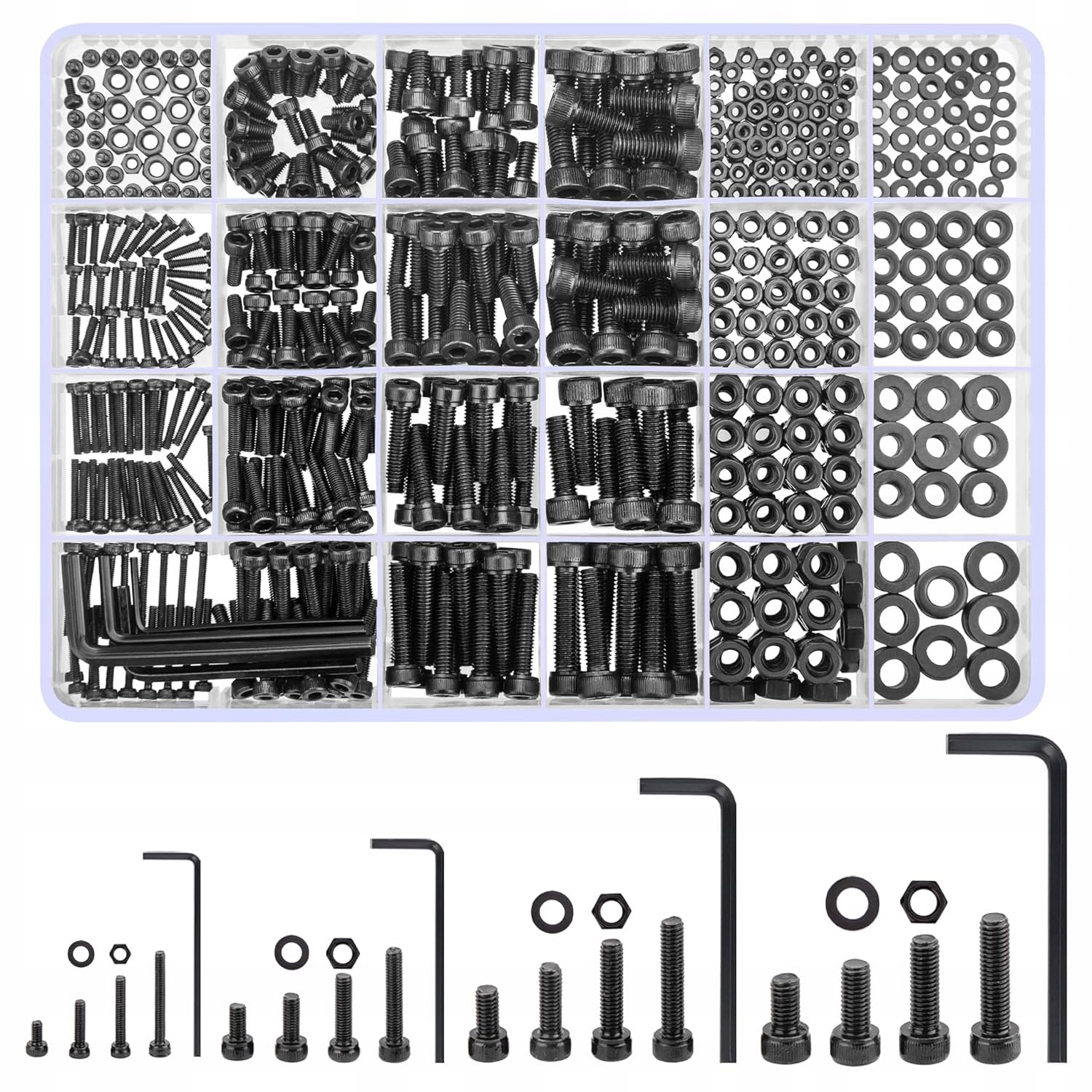 НАБІР З 1230 БОЛТІВ М2 М3 М4 М5 З ШЕСТИГРАННОЮ РОЗЕТКОЮ ГАЙКИ ШАЙБИ