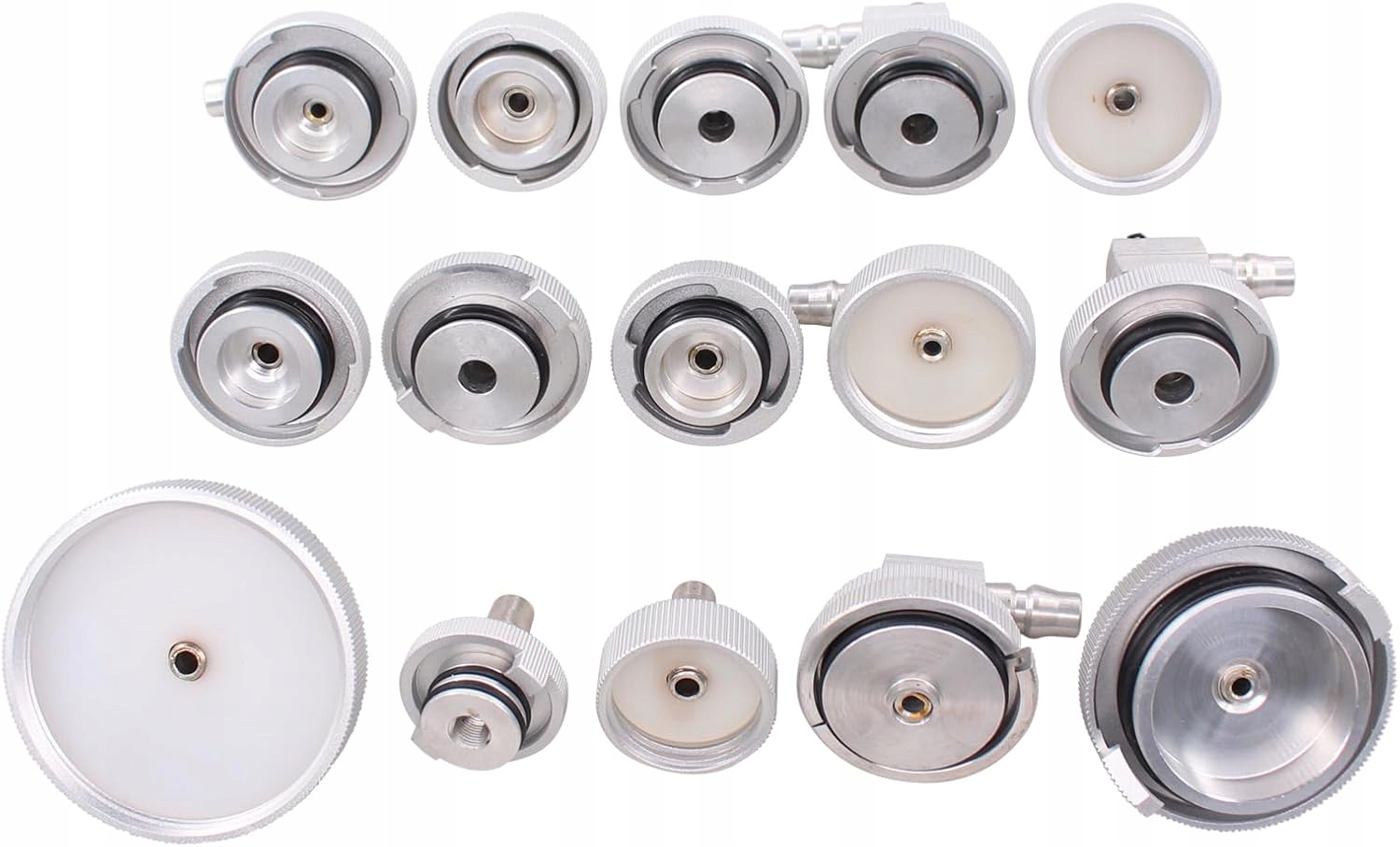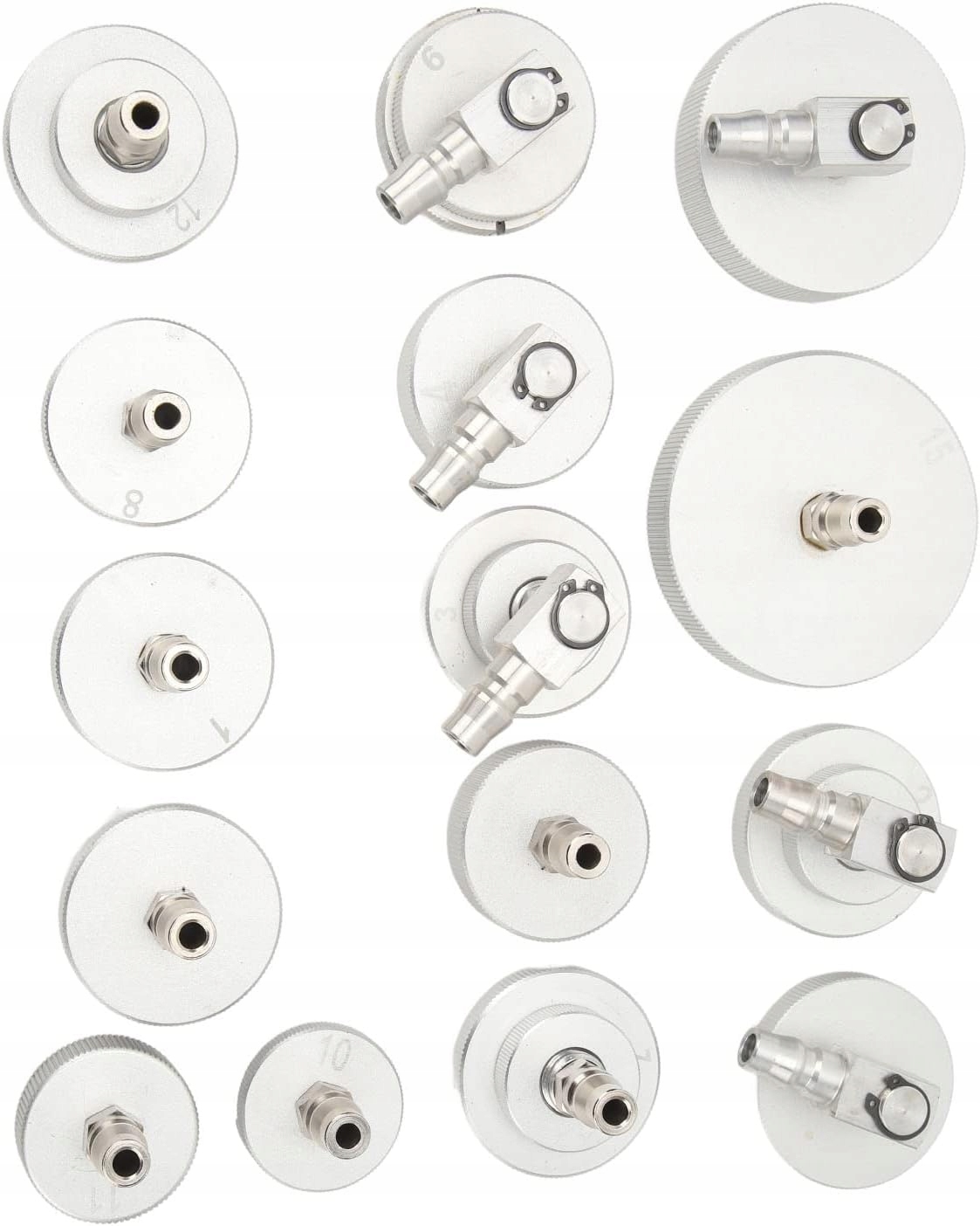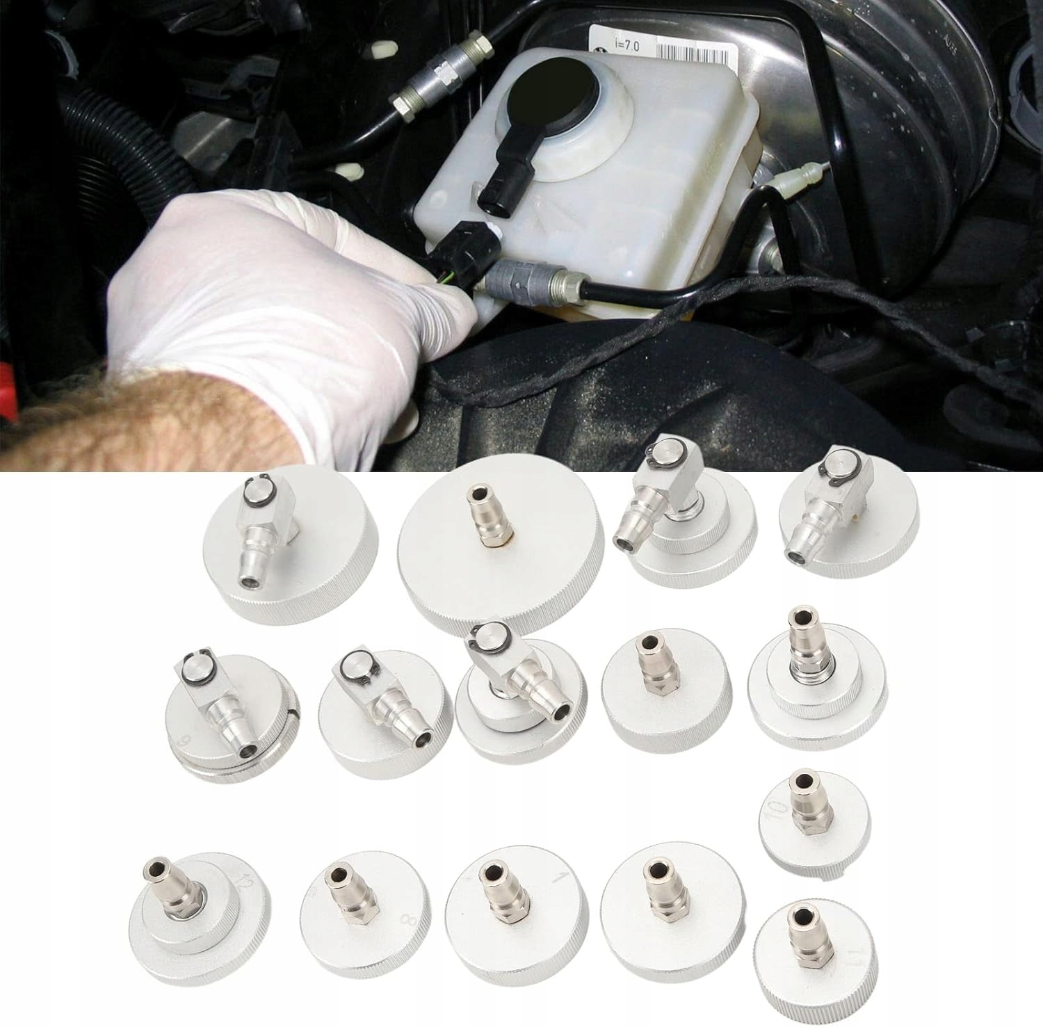 ✅Набор переходников для замены тормозной жидкости, 15 шт. представляет собой полный комплект профессиональных алюминиевых заглушек с уплотнениями, предназначенных для устройств для замены тормозной жидкости. Каждый адаптер изготовлен из прочного алюминия, устойчивого к тормозным жидкостям и коррозии. Благодаря универсальным разъемам набор подходит к большинству сервисных устройств, доступных на рынке.