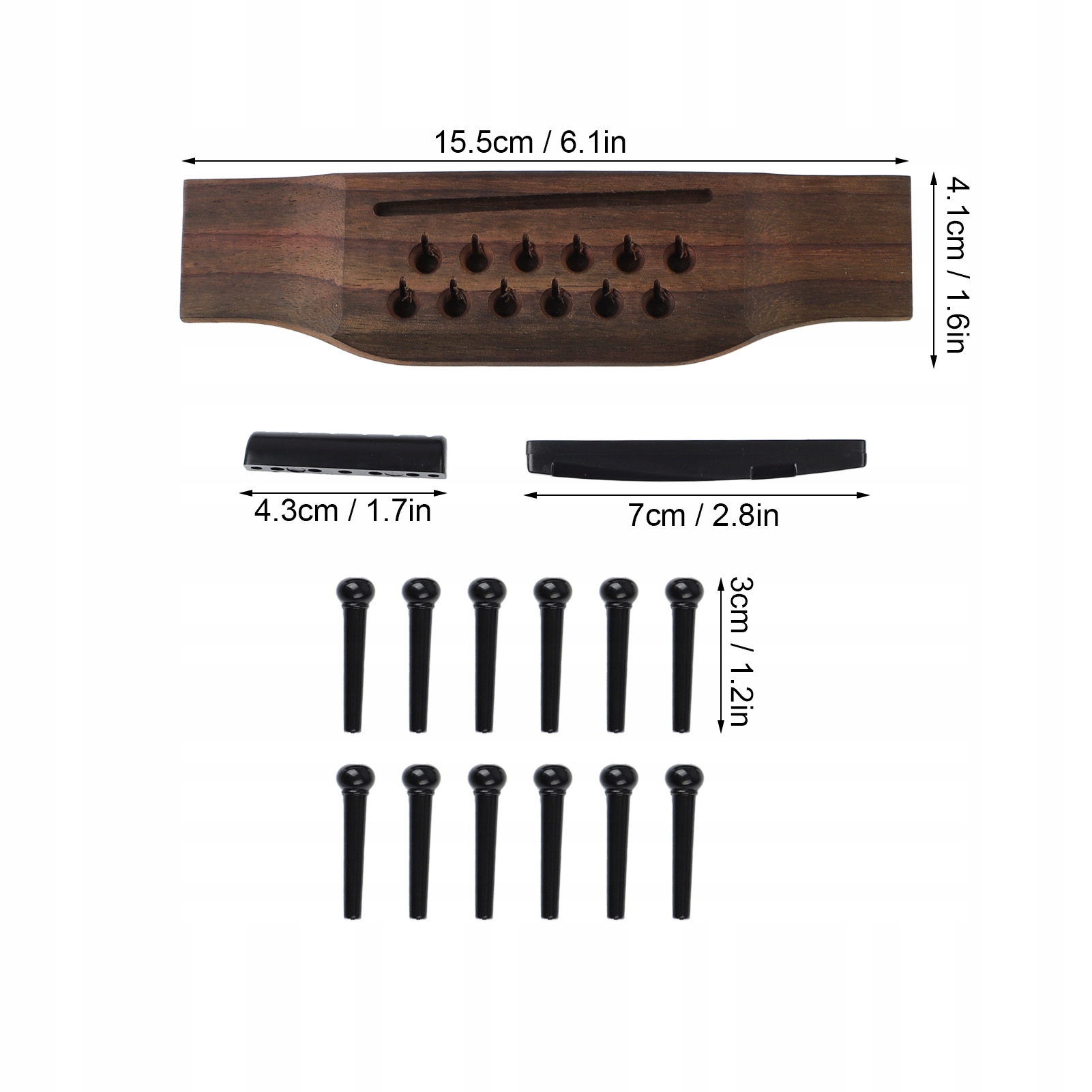 1. Содержимое набора: Наш набор бриджа для 12-струнной гитары включает в себя 12 черных штырей для гитарного бриджа, 1 гайку для гитарного бриджа, 1 седло для гитарного бриджа, 1 гитарный бридж.