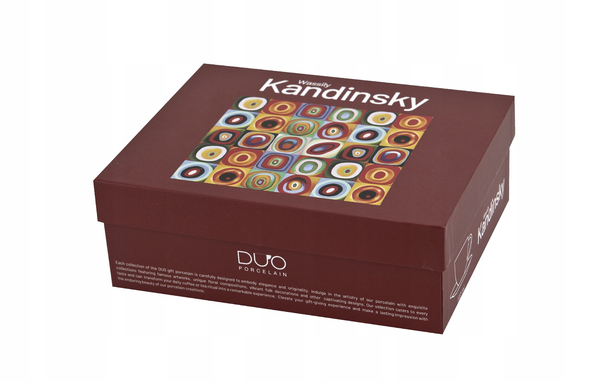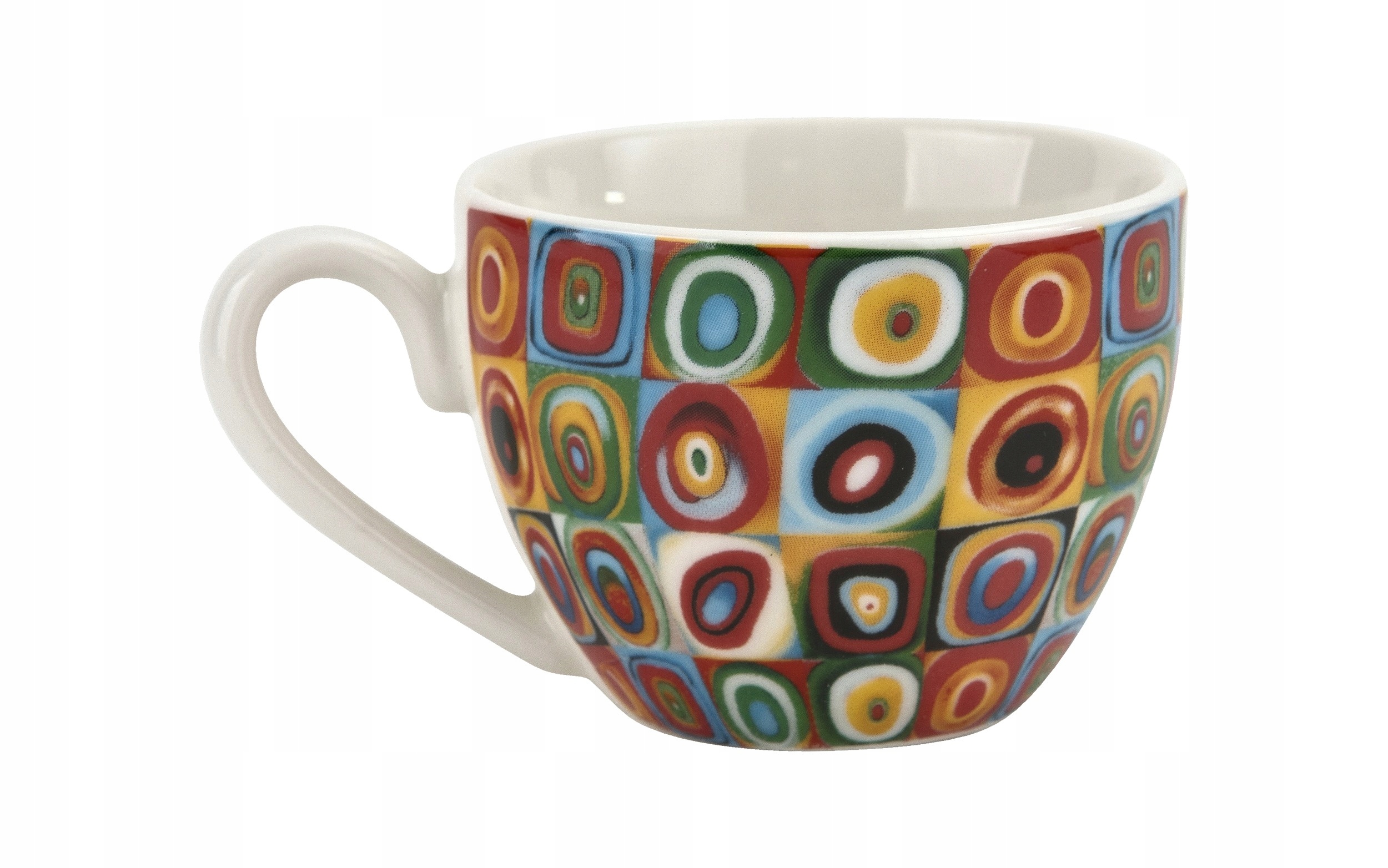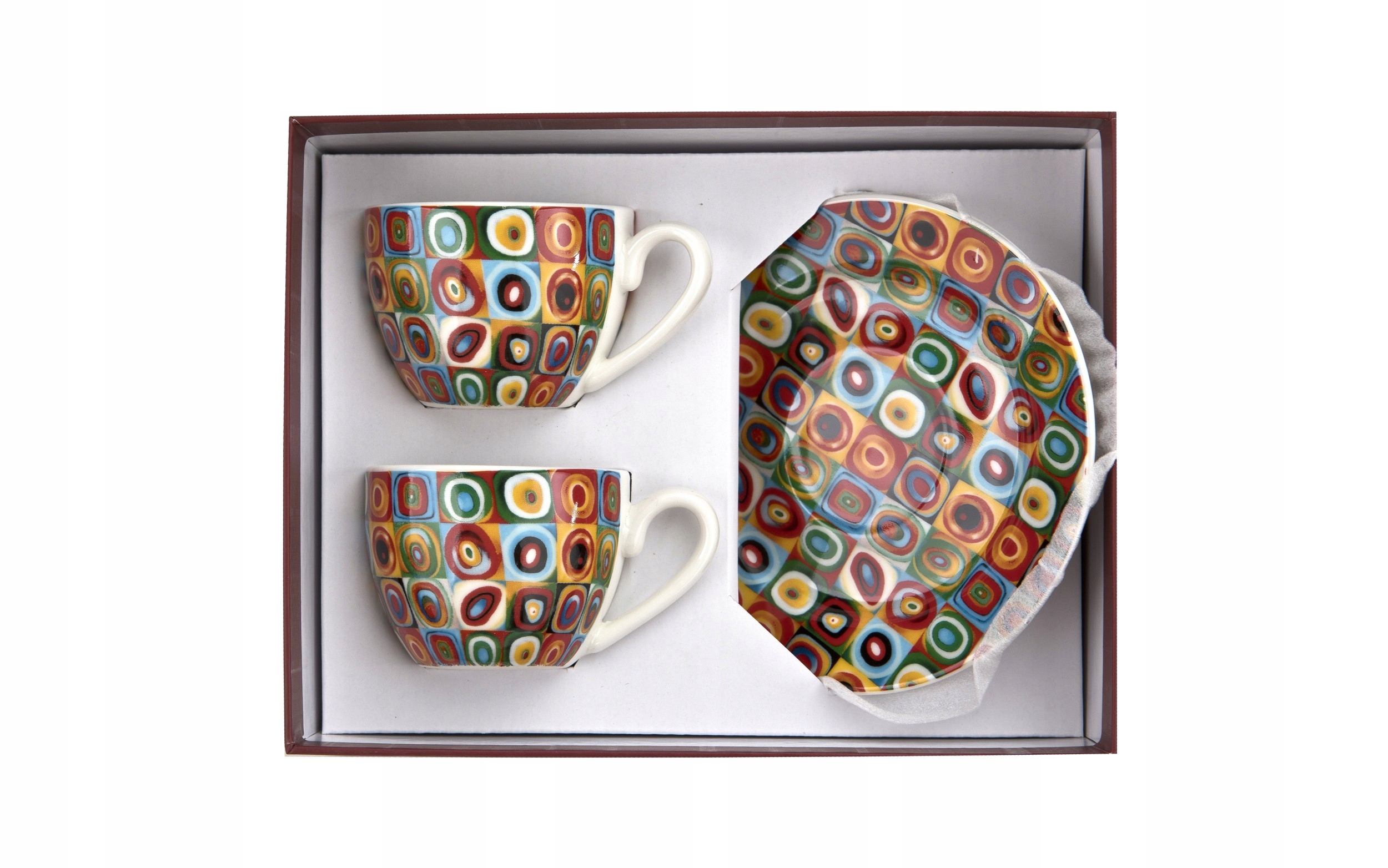 Дизайн чашек отражает абстрактные, динамичные мотивы, отсылающие к выразительным формам и ритмы, известные по произведениям Кандинского. Геометрические квадраты и круги создают сбалансированную композицию, которая стимулирует воображение и привносит нотку искусства в ежедневный кофейный ритуал. Этот набор является не только практичным дополнением к кухне, но и выражением художественного самовыражения — идеально подходит для любителей современного дизайна и вдохновляющих произведений искусства.