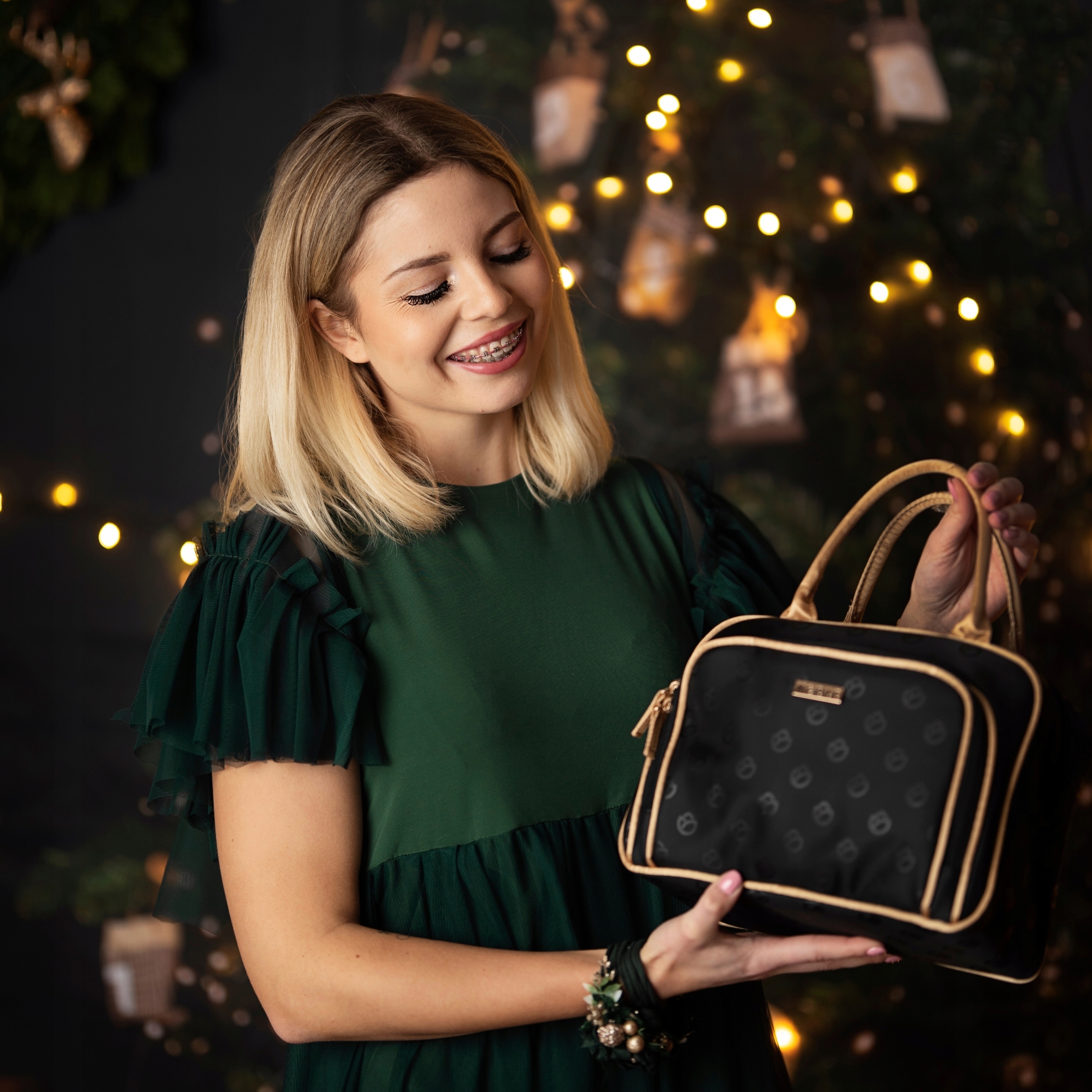 Золотые аксессуары прекрасно гармонируют с глубоким черным материалом косметички. При разработке этой коллекции была продумана каждая деталь, включая оттенок золота, который идеально сочетается со всем остальным.