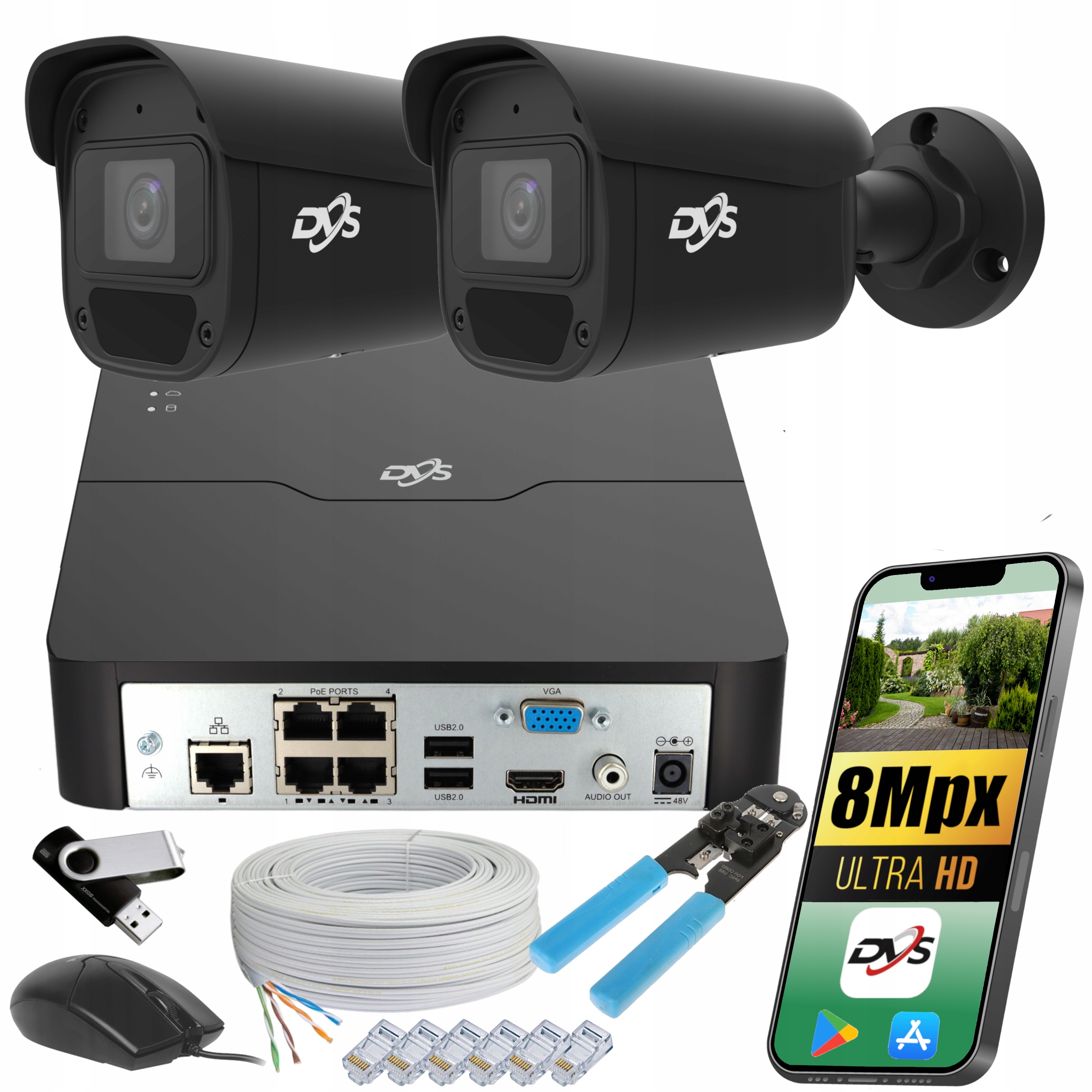 НАБІР З 2 КАМЕР СПОСТЕРЕЖЕННЯ BLACK 8MPX IP POE 2 ЗОВНІШНІ КАМЕРИ