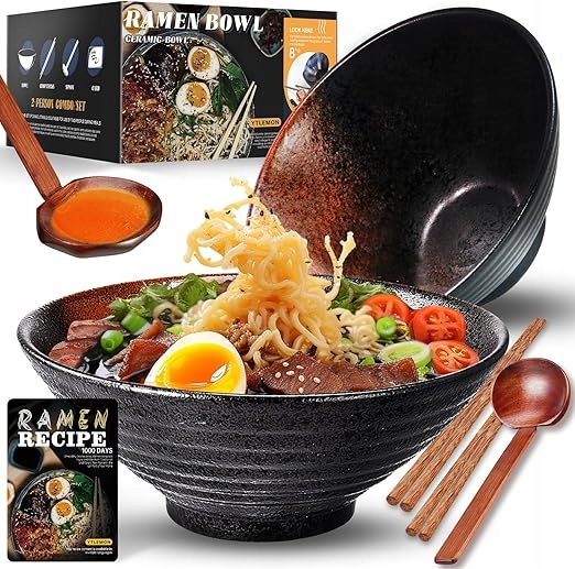 - Набор из 2 больших керамических мисок емкостью 1000 мл - идеально подходит для рамэна, салатов, макарон, каш и супов