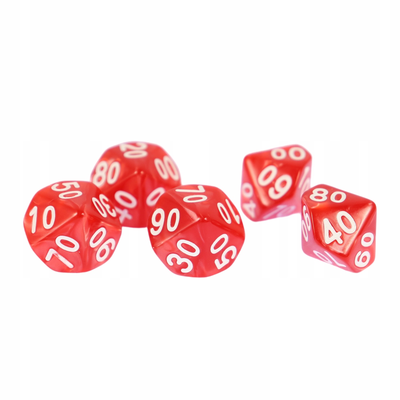 Набор из десятидных пронумерованных костей 00-90. Чрезвычайно высокое качество литья, точность канавки и числа рисования делает их основным выбором для многих игроков, как для начинающих, так и продвинутых.