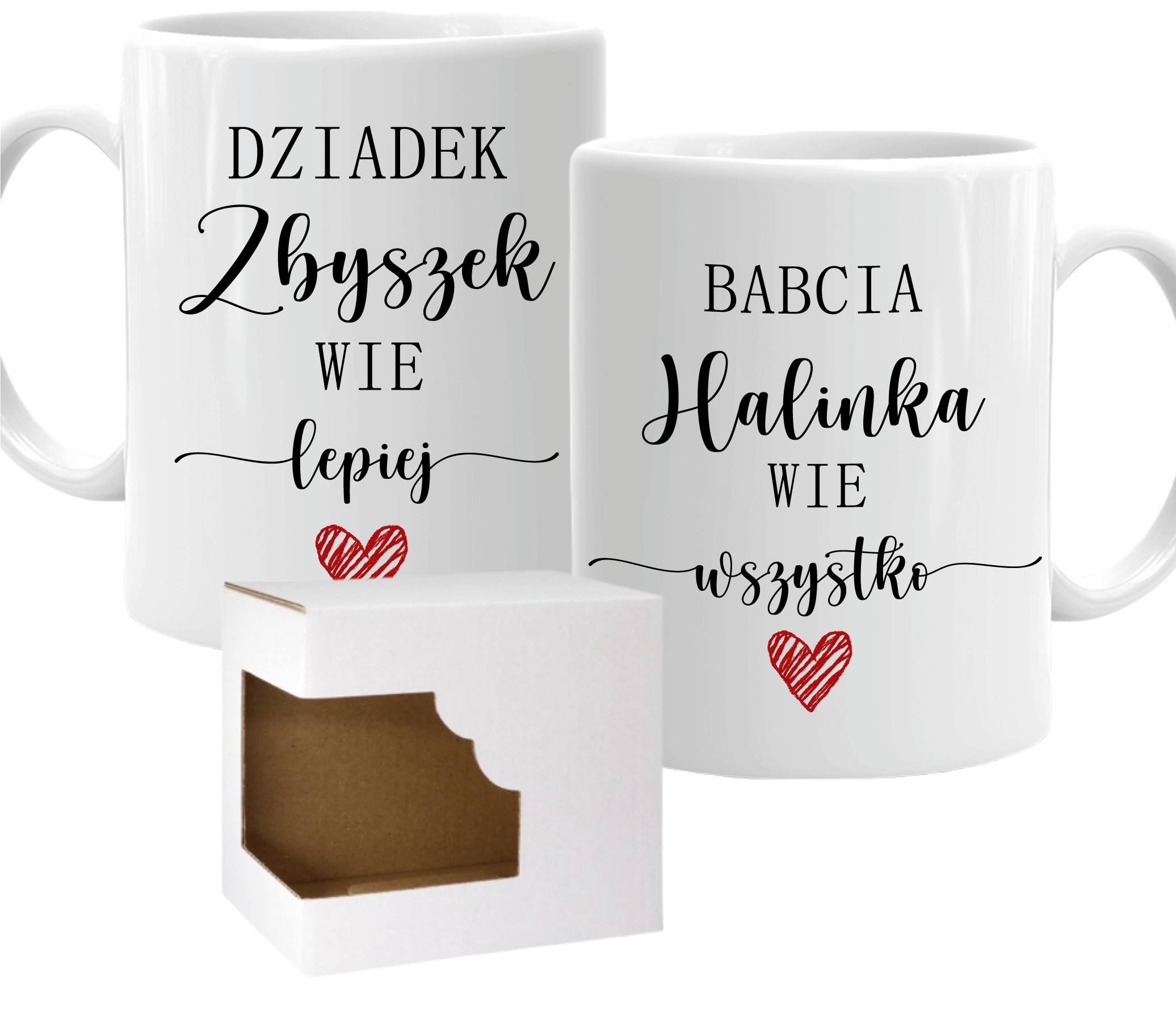 Набор из 2 кружек для БАБУШКИ и ДЕДУШКИ с их именами + коробочки
