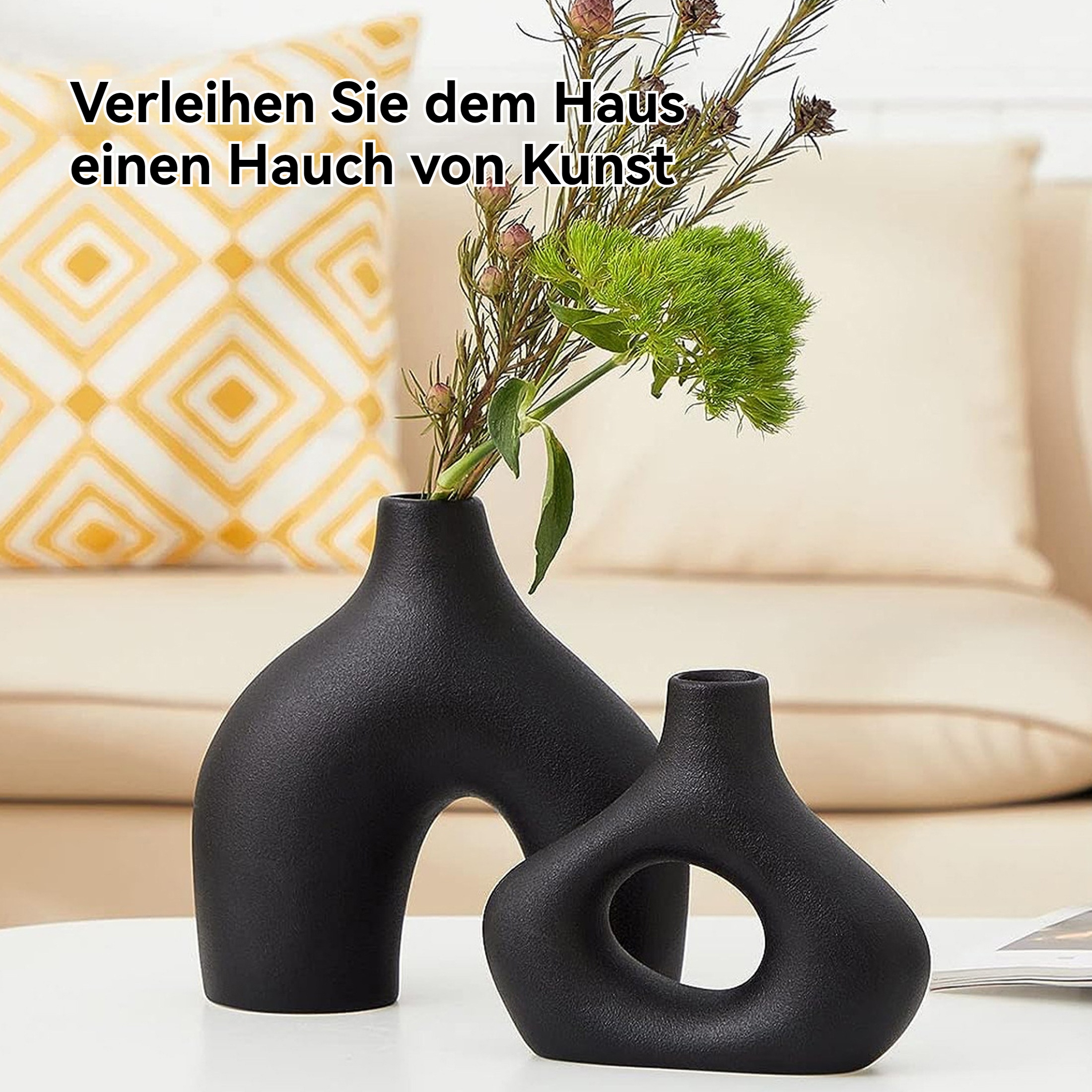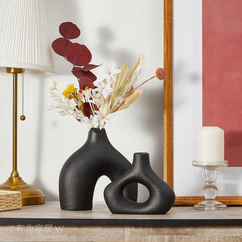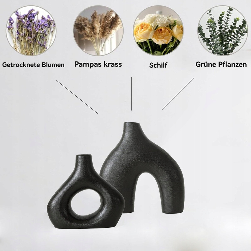 Вы получите две черные керамические вазы в северном стиле, каждая из которых имеет собственное уникальное очарование. Из -за ручных измерений, пожалуйста, примите во внимание отклонение измерений ± 3 см. Эти вазы тщательно сформированы вручную из глины, которая обеспечивает естественную текстуру поверхности, которая обеспечивает приятный визуальный опыт, представляющий простую и уникальную природу абстрактного искусства. Их уникальный дизайн создает эффективный декоративный акцент, независимо от того, наполнены ли они цветами или оставлены в покое.