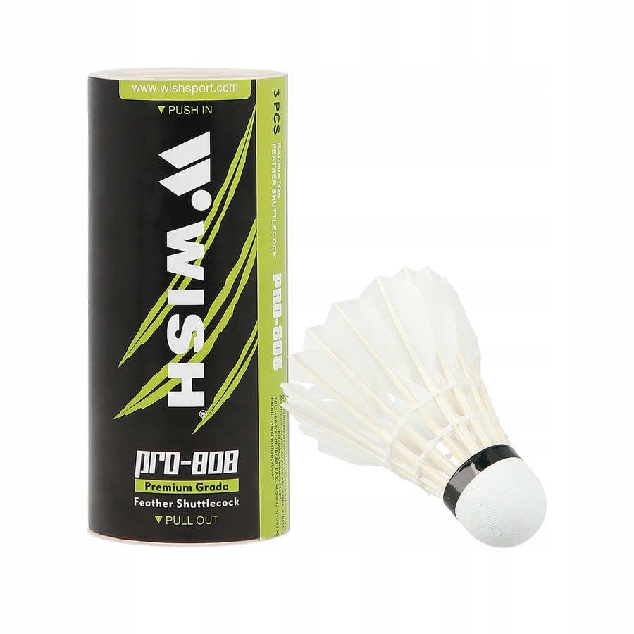 PRO-808 WISH — это перьевые тренировочные воланы на синтетической пробковой основе. Корзина в этой модели изготовлена из утиных перьев, что обеспечивает больший контроль над траекторией полета.